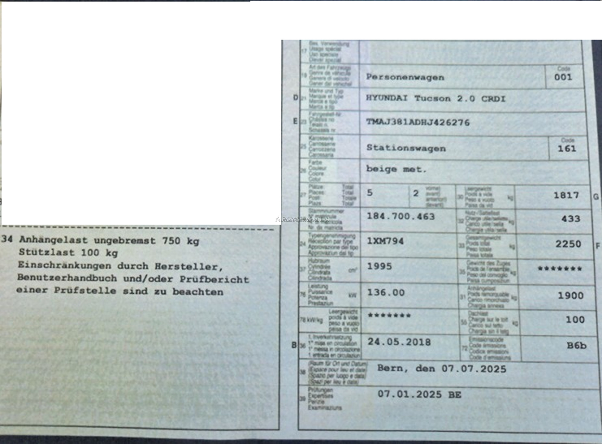 | Kommentar | Unfallfahrzeug, ist jedoch fahrbar. Elektrische Handbremsbetätigung defekt. Die Taste ist wahrscheinlich selber defekt da die ziemlich locker ist. Abrollgeräusch von HR entweder Radlager oder leichte Stufenbildung im Reifen (ab 70Km/h). Jedoch wurde keine Diagnose gemacht. Unsere Fahrzeuge wurden keiner Prüfung unterzogen, Fahrzeugkauf auf eigenes Risiko ab Platz ohne Nachwährschaft. Das Gewährleisten für Sachmängel wird weggegangen. Fahrzeugbereifung, Fahrzeugzustand und Ausstattung gemäss Bildern. |
