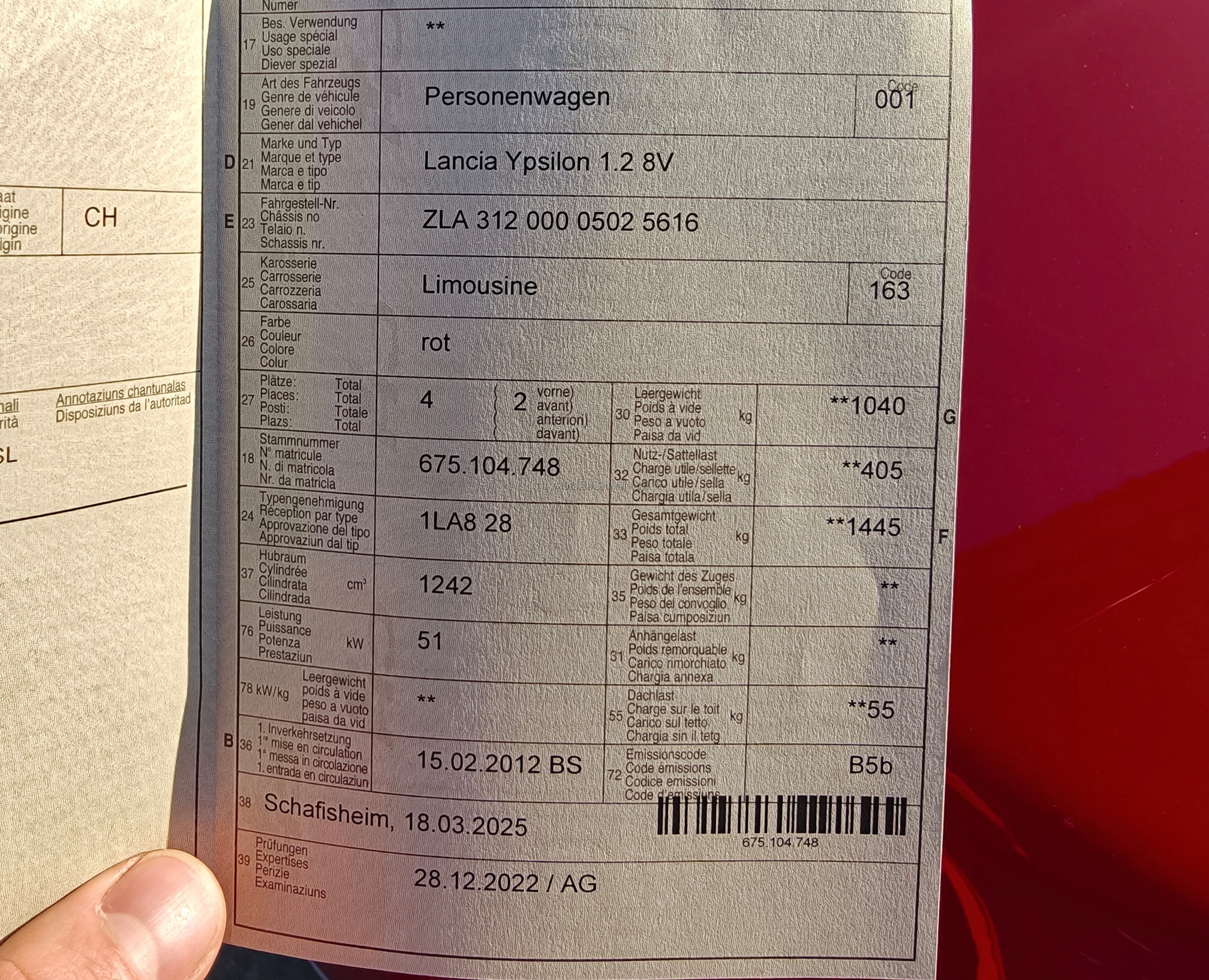 | Innenfarbe | rot / schwarz |