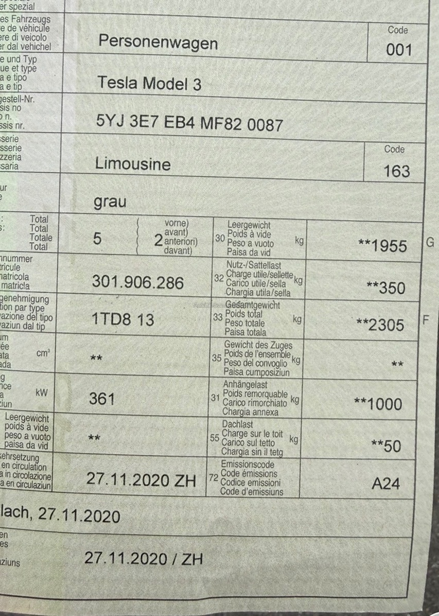 | 1. rejestracja | 27 listopada 2020 |