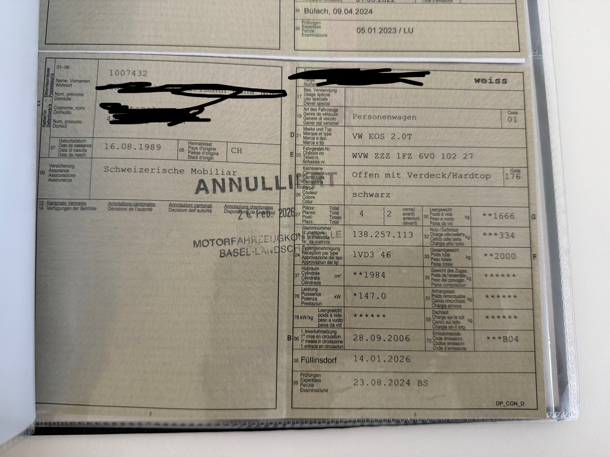 | Kommentar | Auto ist ein einem sehr schönem Zustand. Folgende Details sind bekannt: Neue Radio 7-Zoll Android Navigationssystem D9-V7 Premium für VW ab 2003 z.B. Golf 5 - 192 GB wurde im Januar verbaut Dach funktioniert einwandfrei MFK neu (im Ausweis ist falsche Datum drauf) Neue Batterie drin Wassereintritt an Bereich Dach vorhanden ( wurde nicht diagnostiziert) Vorheriger Kunde hat das Fahrzeug so gefahren, jedoch hatte eine Garage. Gebrauchsspuren siehe Fotos Fahrzeug kann mit Voranmeldung vor Ort besichtigt und gefahren werden. Nachdem der Höchstbietende den Zuschlag erhalten hat, gibt es keine Nachverhandlung. Fahrzeug wird ab Platz verkauft, das heisst ohne Garantie. Wandelung und Minderung werden wegbedungen. Auto ist technisch geprüft worden und hat frisch MFK. Wir testen und kontrollieren nicht alle Funktionen vom Fahrzeug. Das Risiko liegt somit vollumfänglich beim Käufer. |