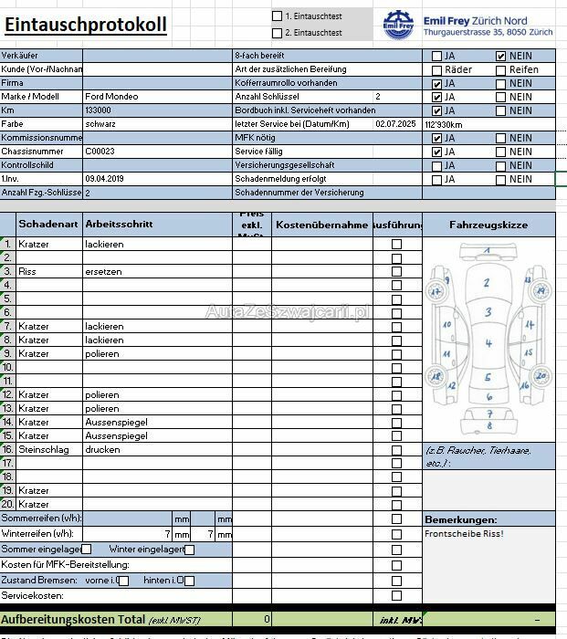 | Reparaturkosten | 0.00 CHF |