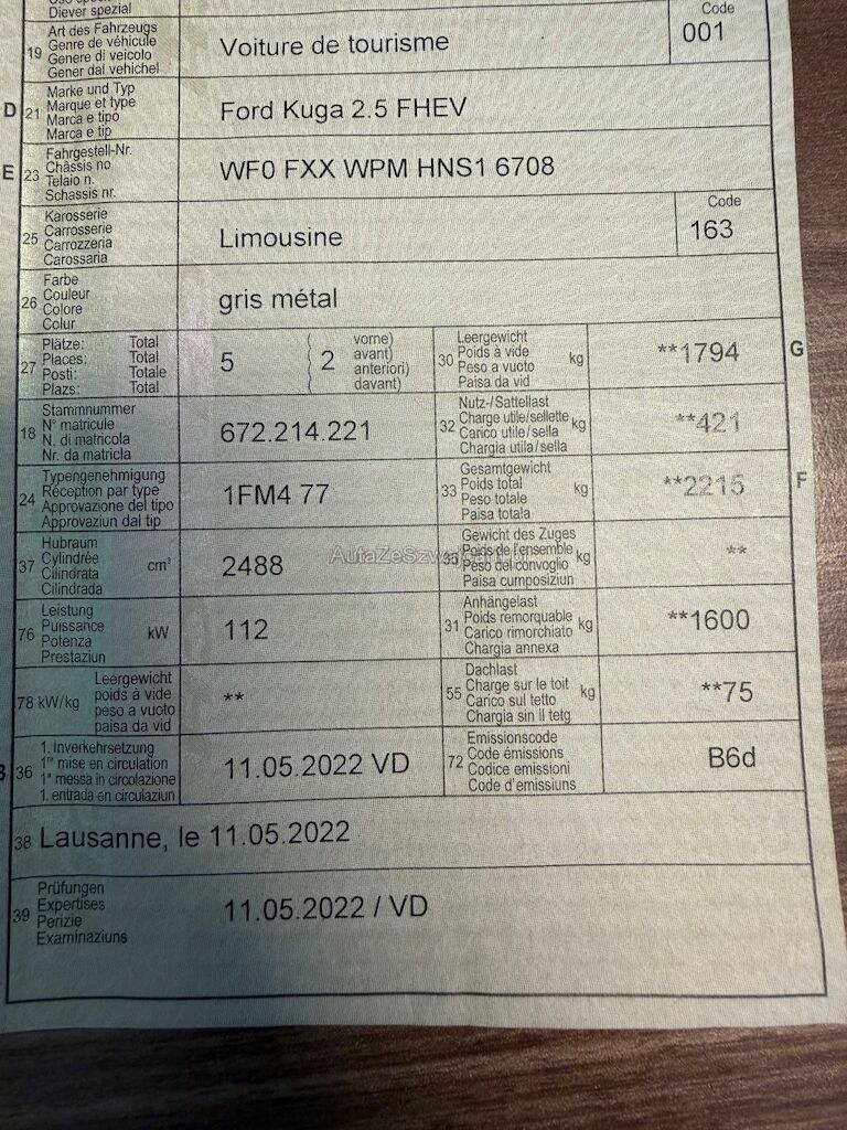 | Typ | Kuga 2.5 FHEV ST-Line X |
