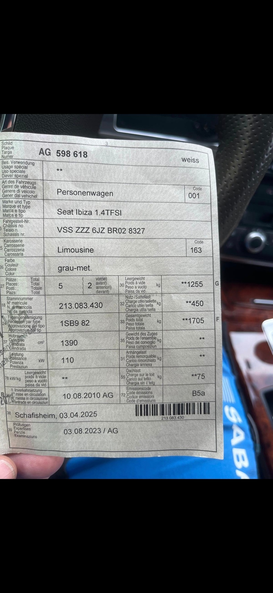 | Kommentar | Der Motor macht Geräusche. Ursache unbekannt, Fahrzeug wird deshalb als Bastlerfahrzeug oder zum Export verkauft. Verkauf erfolgt im aktuellen Zustand, ohne Garantie und ohne Gewährleistung. Keine Rücknahme. Fahrbar am platz |