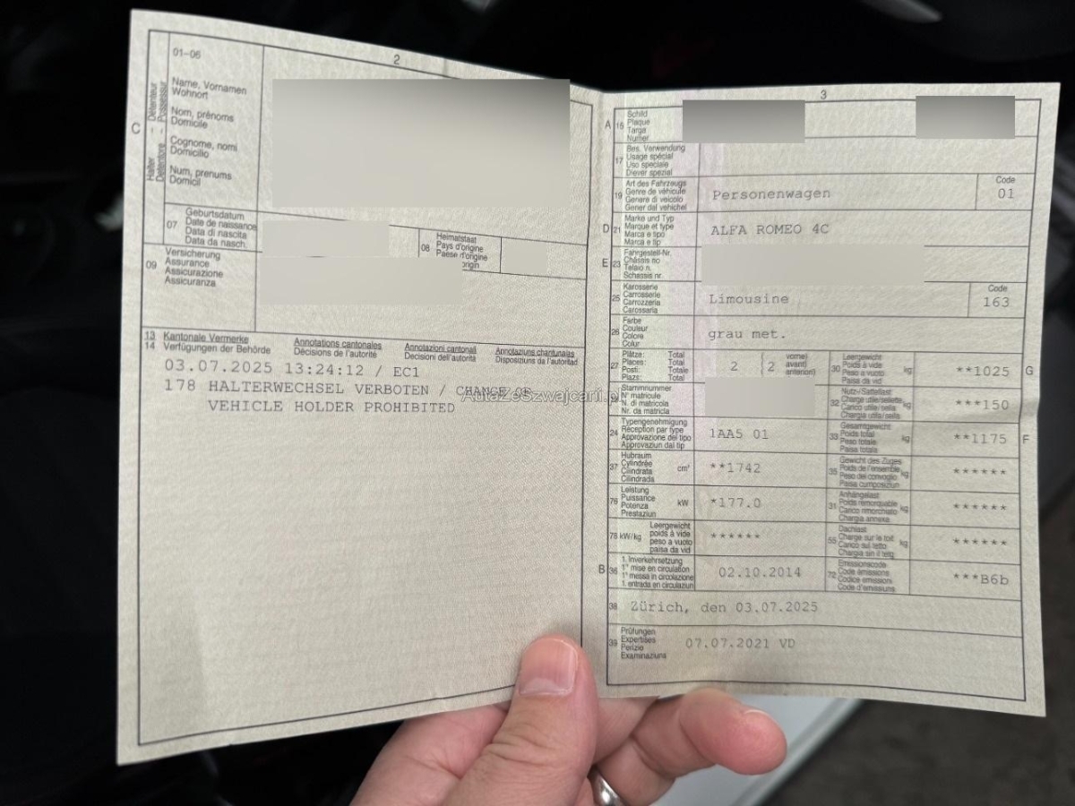| Fahrzeugausweis | Vorhanden |