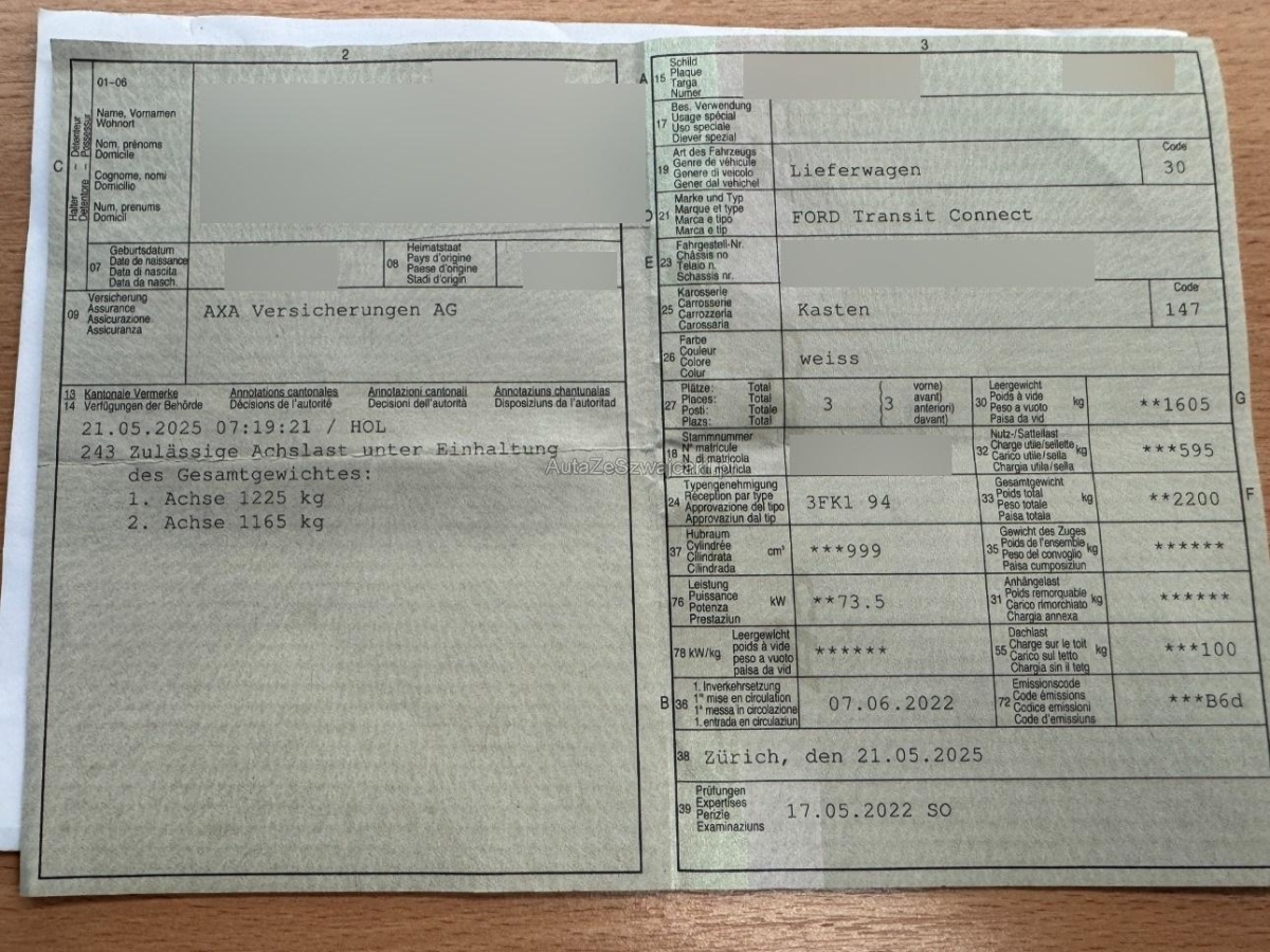 | Fahrzeugausweis | Vorhanden |