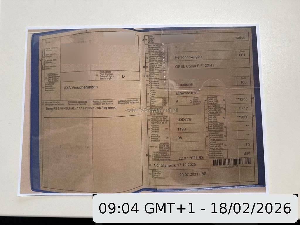 | Fahrzeugausweis | Vorhanden |