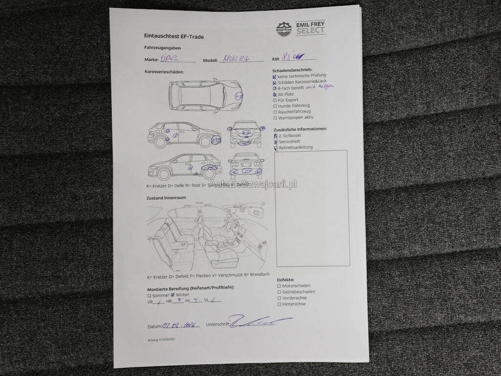 8-fach bereift. Winterräder nicht original, kein Beiblatt vorhanden. Zustand Sommer?
