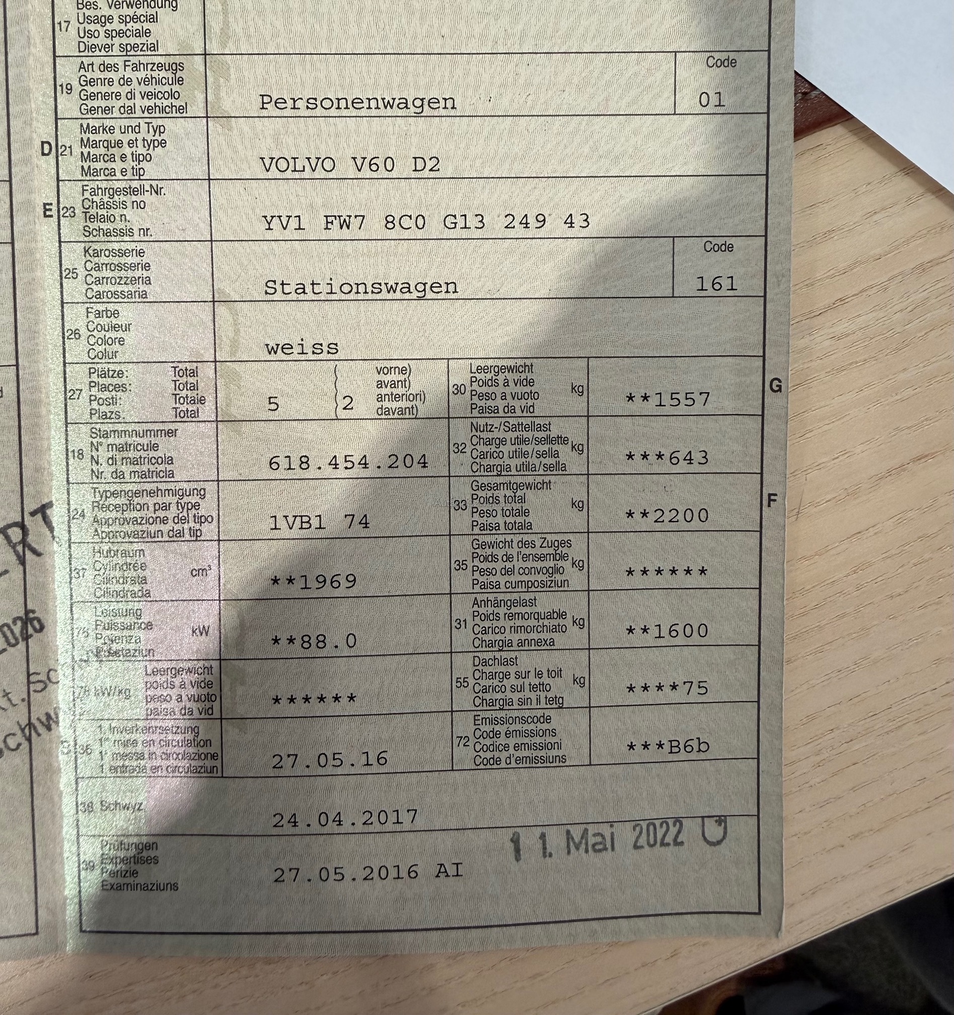 | Letzte Inspektion | 2022-05-01 |
