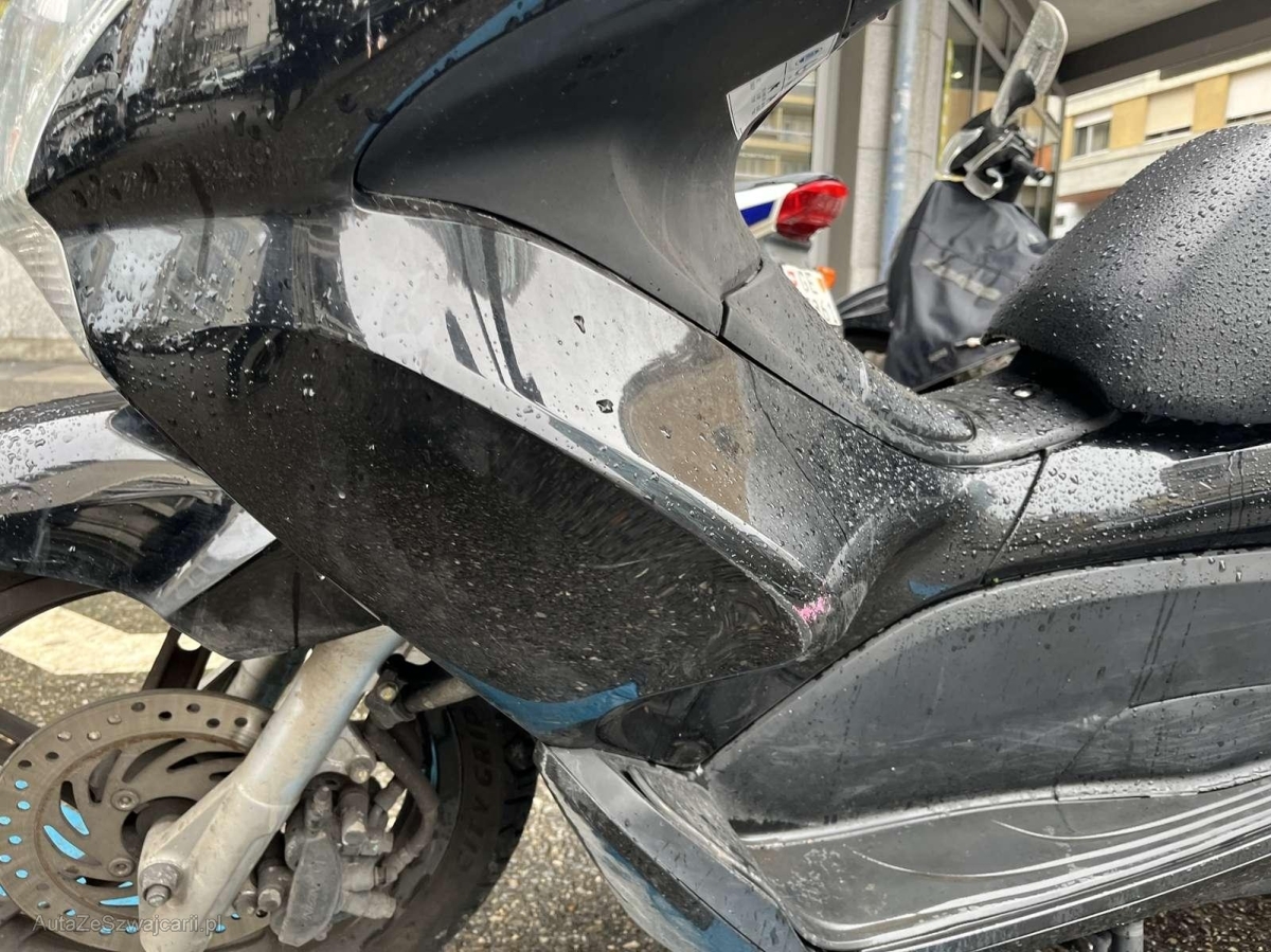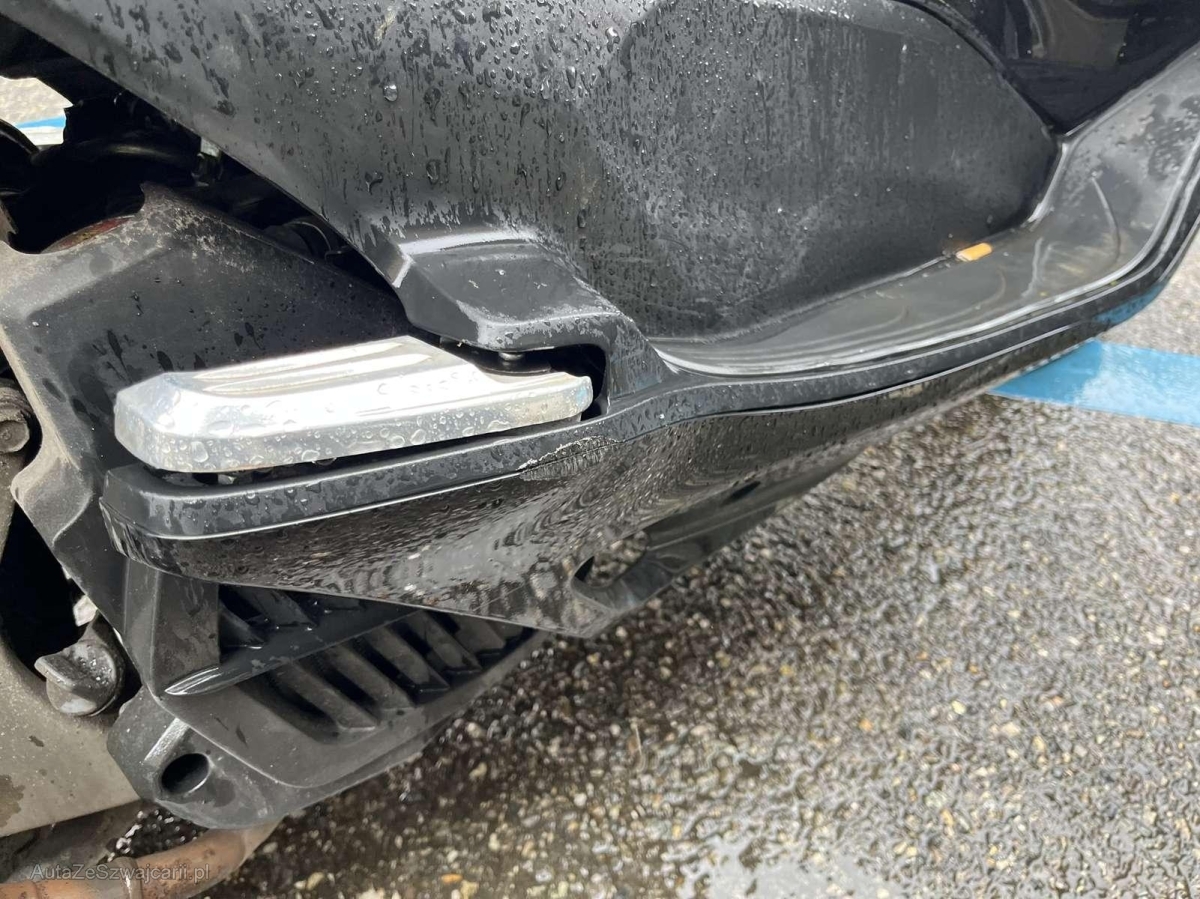 | Schadensbeschreibung | Choc arrière et chute côté droit : Pare-boue arrière, support de plaque et roulement de roue arrière endommagés et cassés. Pare-chaleur échappement, échappement, bas de caisse droit, repose pied, carénage avant droit, levier de frein, rétroviseur râpés. / Dommage préexistant, chute côté gauche : Rétroviseur, levier de frein, carénage avant gauche, bas de caisse, repose pied, carter variateur boite à air, béquille râpés. |