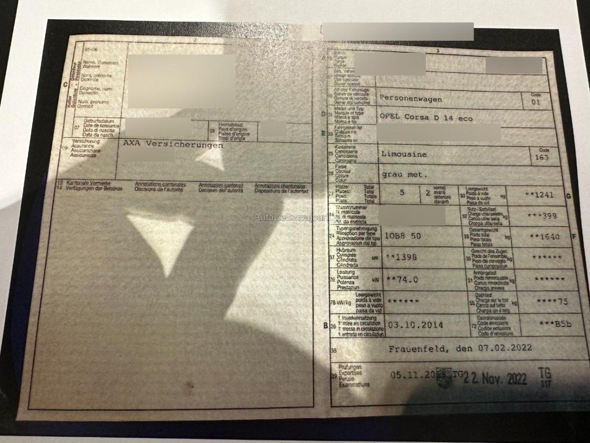 | Fahrzeugausweis | Vorhanden |