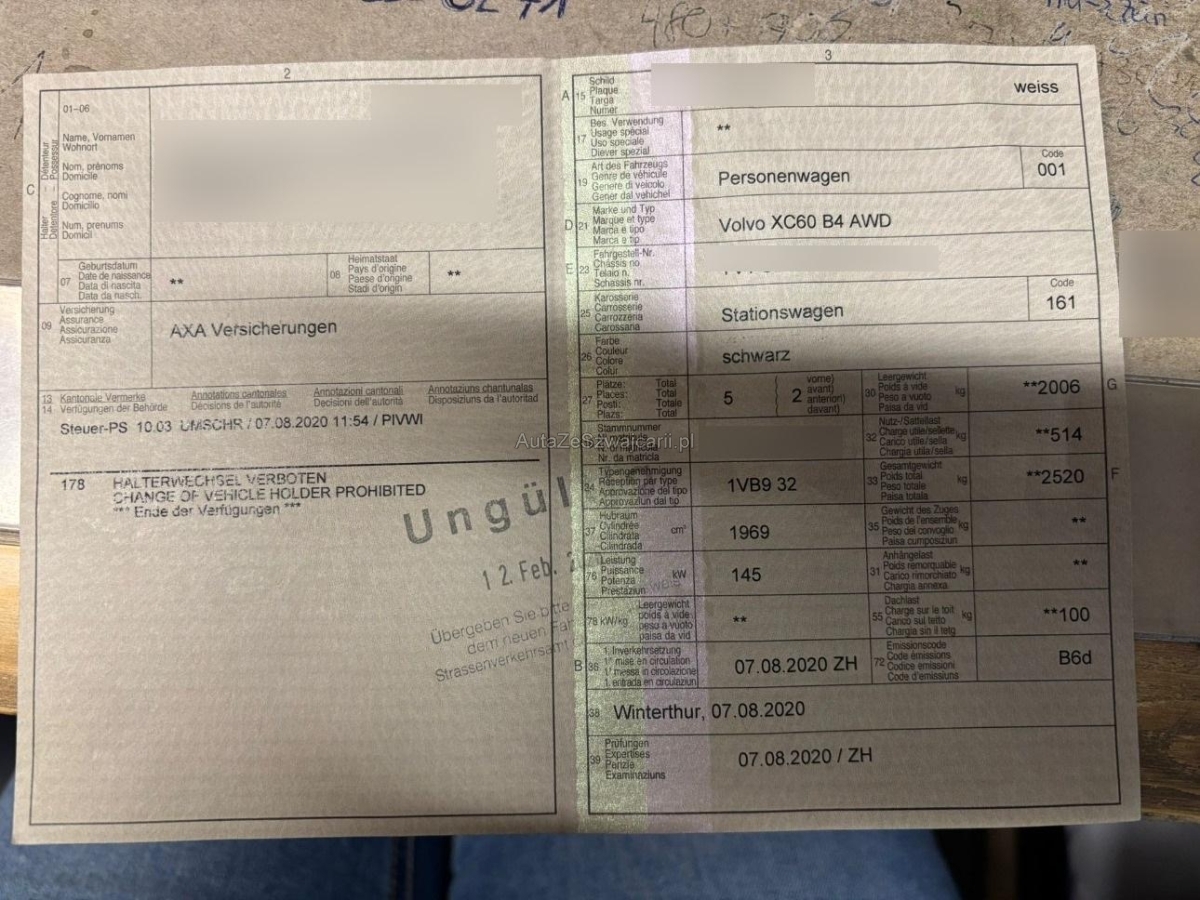 | Fahrzeugausweis | Vorhanden |
