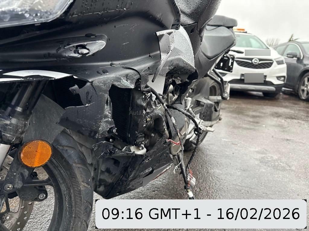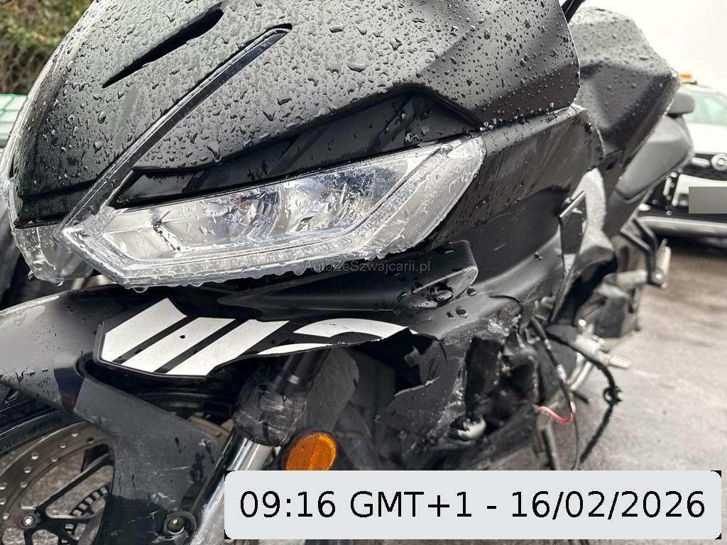 | Beschädigungen | Aussenspiegel links, Front, Fussraster links, Gabelholm, Griff links, Heckverkleidung, Kabelstrang, Kupplungsgehäuse, Kühler, Lenker, Rahmen, Rücklicht links, Scheinwerfer, Schutzblech vorne, Seite links, Tank, Verschalungen links, Verschalungen vorne, Windschutzscheibe |