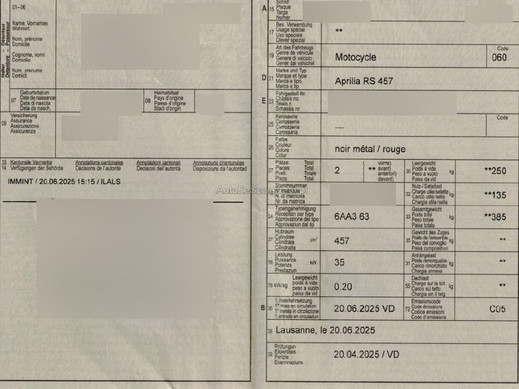 | Fahrzeugausweis | Vorhanden |