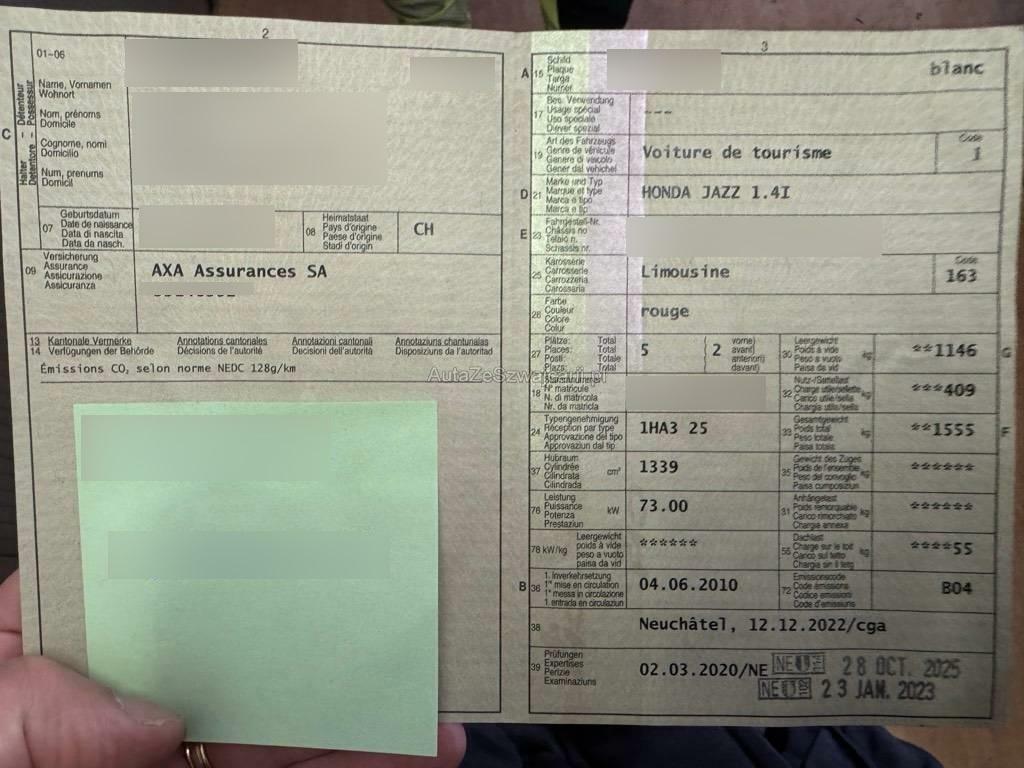 | Fahrzeugausweis | Vorhanden |