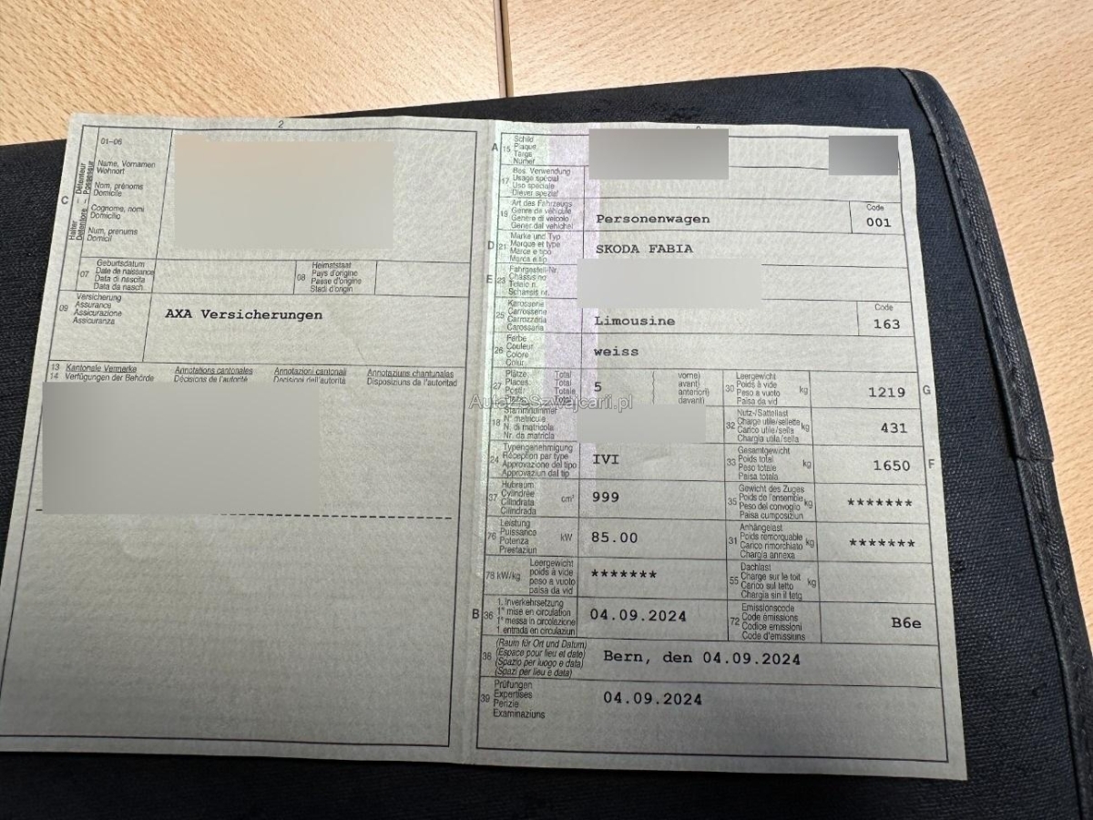 | Fahrzeugausweis | Vorhanden |