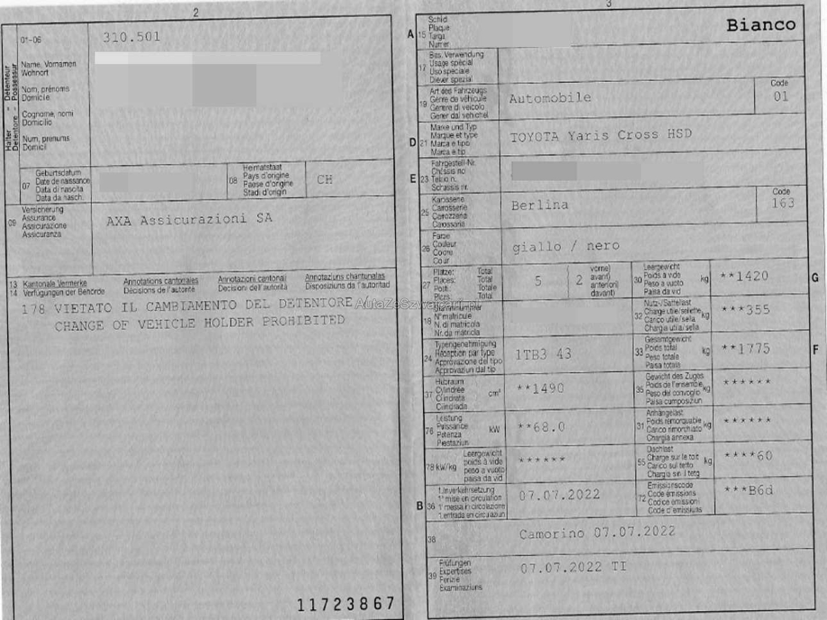 | Fahrzeugausweis | Vorhanden |