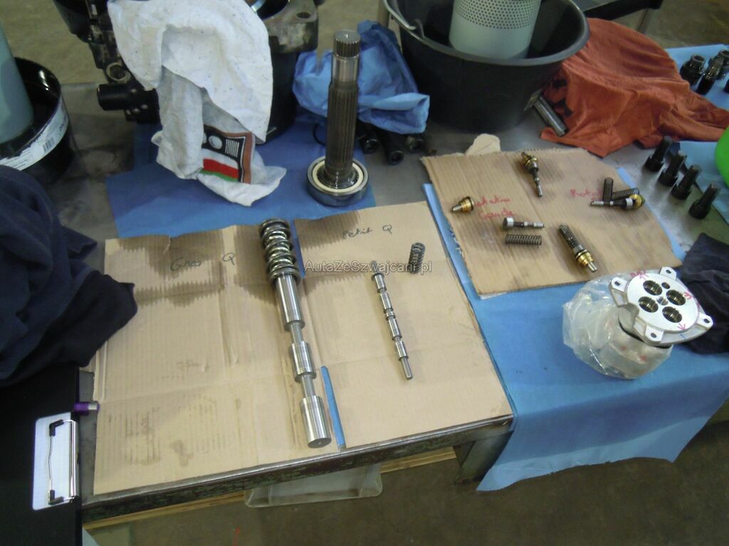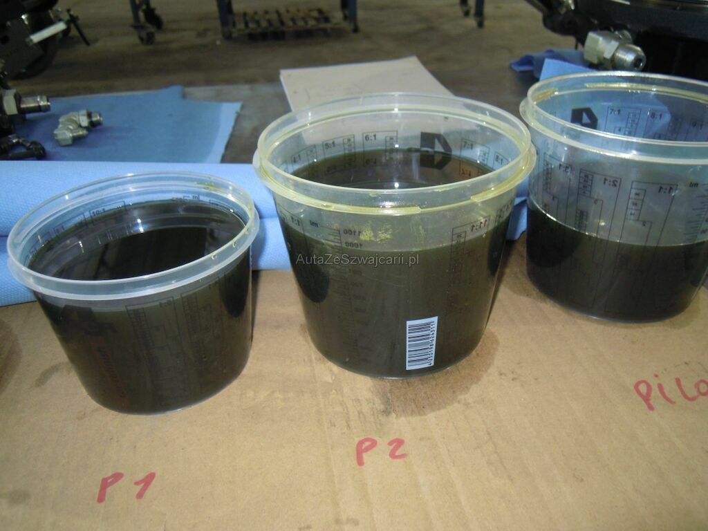 Circuit hydraulique complet pollué par de la très fine limaille, huile noircie, micro-rayures sur les éléments de pompage et sur les pièces rotatives.