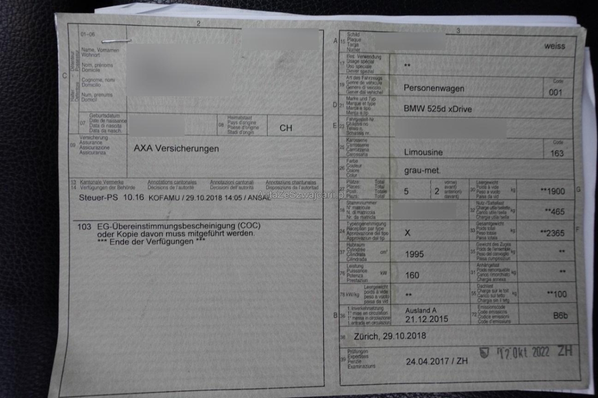 | Fahrzeugausweis | Vorhanden |