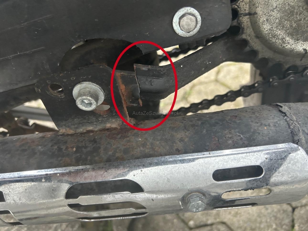 | Beschädigungen | Auspufftopf, Diverse Anbauteile, Rahmen, Schwinge |