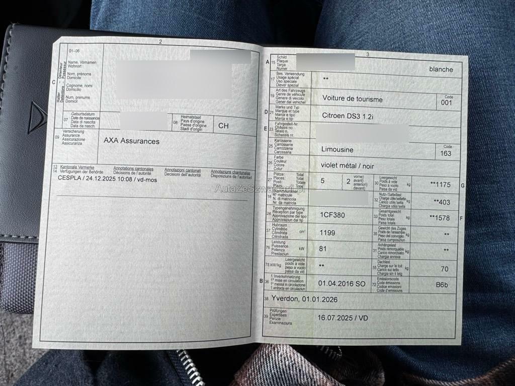 | Fahrzeugausweis | Vorhanden |
