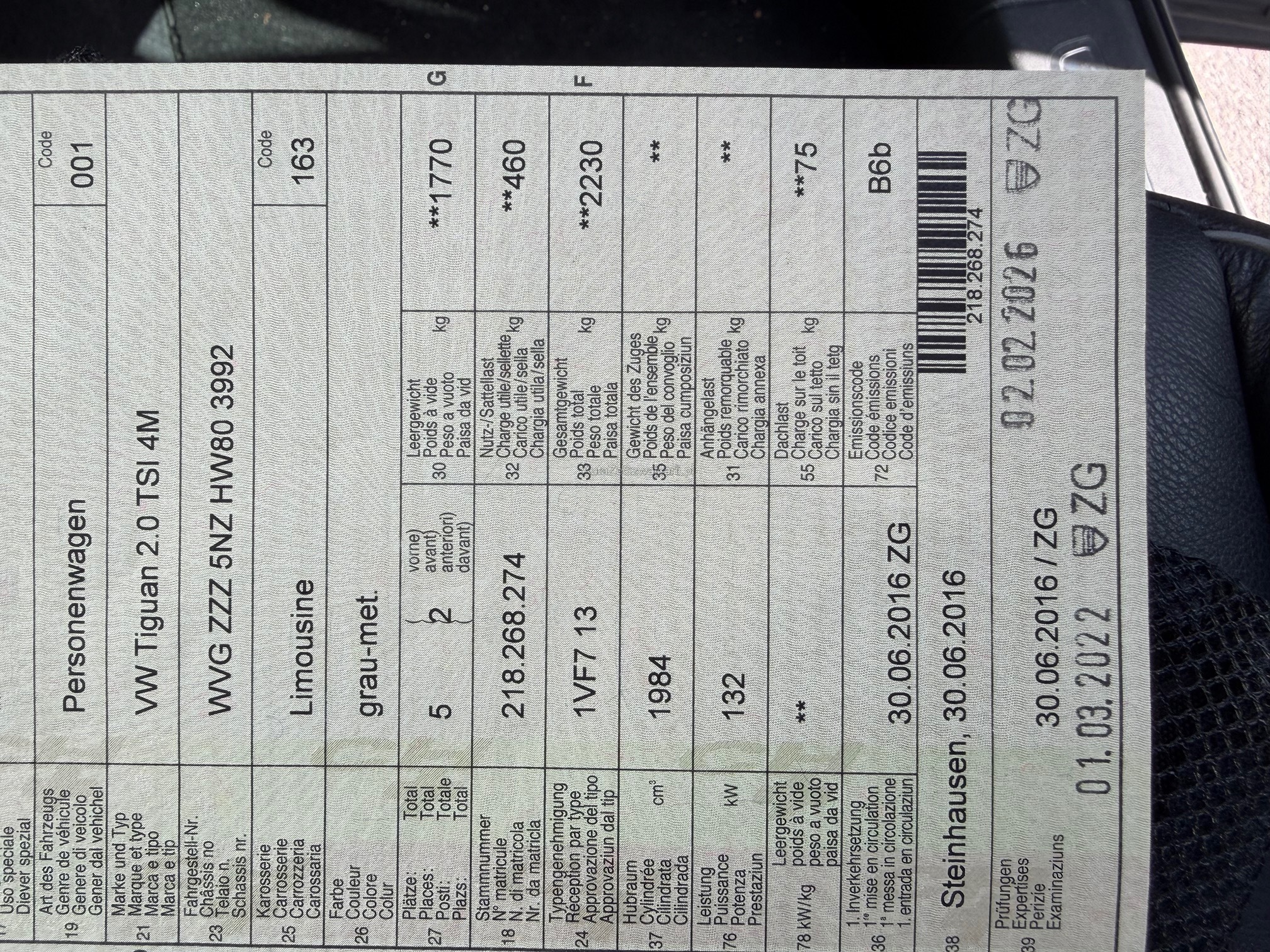 | Kommentar | VW TIGUAN HL 2.0 TSI 180PS DSG 4M - Frisch ab MFK (02.2026) - 8-Fach Winter- / Sommerräder - Fahrzeug und Schäden wie gesehen, ab Platz, ohne Garantie und Gewährleistung. Fahrzeug derzeit noch in Kundenbesitz. |