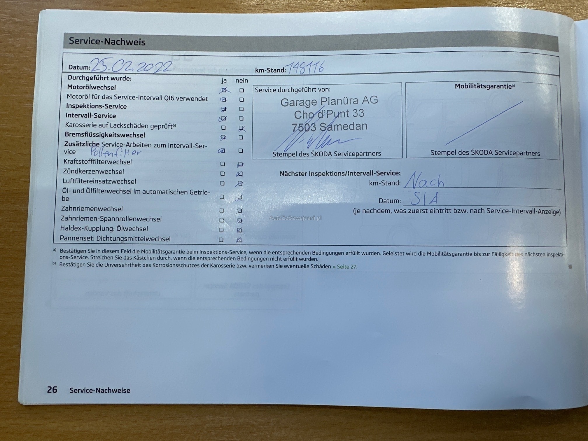 | Kommentar | Fahrzeug wird wegen Neuanschaffung verkauft! Bekannte Mängel: -Leichter Motorölverlust Simmenring/ Kurbelwelle -Korrosion Seitenschweller links und rechts hinten(siehe Fotos) -Dachreling fehlt ein Teil (siehe Fotos) -MFK fällig (letzte am 21.11.2023) -Diverse Kratzer und Dellen, Gebrauchspuren -Diverse Steinschläge -Profiltiefe der Winterreifen ca. 5-6mm Es wurde kein Werkstatttest getätigt. Jede Gewährleistung, soweit nach Gesetz möglich, wird wegbedungen. Insbesondere sind Wandelung und Minderung ausgeschlossen. |