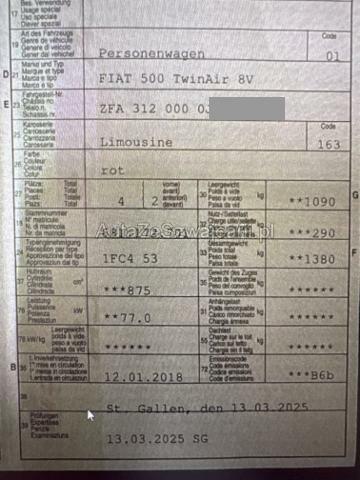 | Condition_and_Equipment | Zustand Fahrzeug muss transportiert werden (Höhe und Breite beachten). Fahrzeug ist NICHT fahrbar. Motor startet nicht, Ursache unbekannt. Kategorie Fahrzeug nach Diebstahl aufgefunden. --- Motor Risiko Motor. Alle Kühler vorne sind eingedrückt. Innenraum Starke Verschmutzung im Innenraum. Sonstige Schäden Div.Carrosserie Teile sind leicht beschädigt. Hagel Hagelschaden leicht. Weitere Beschädigungen Zylinderkopfdichtung defekt. --- Serienaustattung Airbag Fahrer und Beifahrerseite Elektrische Fensterheber vorne Tempomat Zentralverriegelung mit Fernbedienung Lenkrad verstellbar Glasdach Fussmatten Lederlenkrad mit Audiobedienung Tagesfahrlichtschaltung Stossfänger in Wagenfarbe Isofix-Kindersitzbefestigung Aussenspiegel verchromt Leichtmetallräder 16" Servolenkung elektrisch Feuerschutz-System FPS (Fire Prev.System) Hintere Sitzbank geteilt abklappbar 50/50 ABS/ EBD Seitenairbags ESP/ ASR/ MSR/ Hill Holder Nebelscheinwerfer vorne Follow-me-home Lichtfunktion Knieairbag Fahrer Reifen-Pannenset Klimaanlage manuell mit Pollenfilter Auspuff-Endrohr verchromt Fahrersitz höhenverstellbar Bremsassistent BA Kopfairbags Reifendruck-Sensoren TPMS Start + Stopp Funktion Keine Gewähr auf die Angaben der Serienausstattungen Chromfinnen für die Motorhaube Uconnect/ 7" Touchscreen Zierleisten Chrom Beifahrersitz mit mechanischem Positionsspeicher Sonderausstattung Park-Distanz-Sensor hinten Regen- und Lichtsensor Uni-Lackierung |