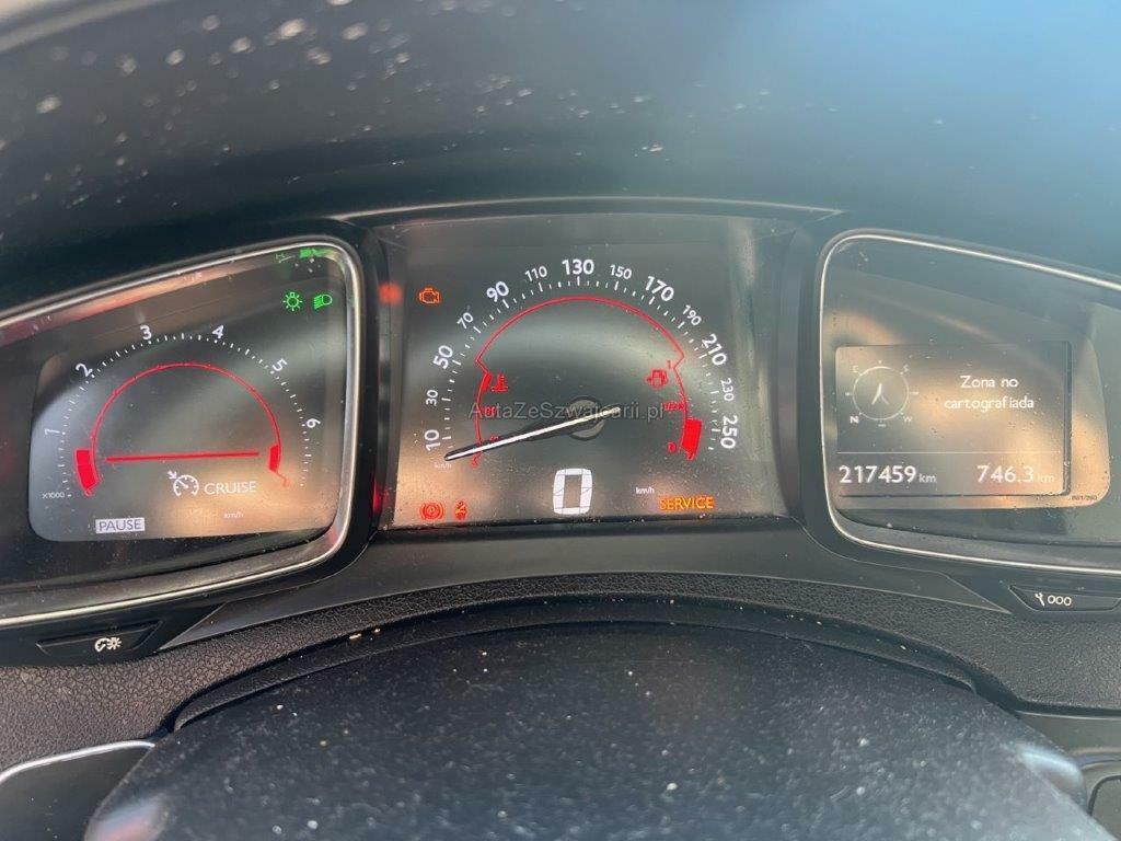| Serienausstattung | Licht: Nebelscheinwerfer mit Abbiegelicht, Scheinwerfer-Waschanlage, Elektrische Handbremse, Head-Up Display, Applikationen, Seitenschutzleisten verchromt, Servolenkung, Pedalerie mit Aluminiumauflage, Kreuzstütze für Fahrersitz elektrisch verstellbar, Media: Bluetooth-Schnittstelle, Dunkel getönte Scheiben hinten, Polster: Leder-Ausstattung, Lederlenkrad mit Dekoreinlagen, Mittelarmlehne hinten inkl. Skisack, Assist: Berganfahrhilfe, Einstiegsleisten in Aluminium, Wegfahrsperre elektronisch, USB+AUX-Anschluss, Bluetooth Freisprecheinrichtung, Panorama-Glasdach, Innenspiegel automatisch abblendbar, Leichtmetallfelgen 18J Canaveral Grau matt, Klima: Automatische Zweizonen-Klimaanlage, Navigationssystem mit Farbmonitor, Airbag: Window-Kopfairbags, Getönte Scheiben, Aussenspiegel rechts und links beheizbar und elektrisch verstellbar, Aussenspiegel elektrisch einklappbar, Heckscheibenheizung, Elektrische Fensterheber vorne + hinten, Automatische Scheibenwischer vorne und automatisches Einschalten der Scheinwerfer (Show me Home), Start-/Stop-Knopf, Tweeters, Elektronisches Stabilitäts- und Traktionskontrolle (ESP / TCS) mit Bremsassistent (BAS), Airbag: Seitenairbag für Fahrer und Beifahrer, Analog-Uhr, Audiofernbedienung am Lenkrad, Radio/CD-Player mit MP3, Sitzbank der 2. Sitzreihe umklappbar (1/3 - 2/3), Rückfahrkamera, Licht- und Regensensor, Auspuffblende, verchromt, ISOFIX-Befestigungspunkte für Kindersitz an den äusseren Rücksitzen, Getriebe: 6-Gang-Getriebe, Warnblinkautomatik bei Vollbremsung, Airbag: Airbag Beifahrer deaktivierbar, Citroen eTouch, 4 Lautsprecher, ABS, EBD elektronische Bremskraftverteilung, Türgriffe aussen verchromt, Teppichfussmatten vorne und hinten, Räder: Reifenpannen-Set (Tire Kit), Auspuffanlage mit 2 Endrohren, Antriebsschlupfregelung (ASR), Lackierung: Uni-Lackierung, Katalysator geregelt, Airbag: Airbag Fahrer und Beifahrer, Keyless Entry, Sitze: Vordersitze elektrisch verstellbar, Licht: Drittes Bremslicht, Licht: Nebelschlussleuchte, UV-absorbierende Verglasung, Pollenfilter (Staubfilter), Blinker in Aussenspiegel, Dunkel getönte Heckscheibe und Scheiben, Assist: Geschwindigkeitsregler und -begrenzer, Assist: Einparkhilfe vorne und hinten |