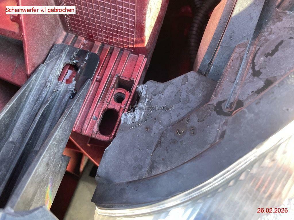 | Schadensbeschreibung | Beschreibung der Schäden: Stossstange und diverse Anbauteile beschädigt, Fehler PDC, Balken eingedrückt, Schlossträger gebrochen, div. Luftführungen gebrochen, beide Scheinwerfer gebrochen, Motorhaube eingedrückt, Kotflügel v.r leicht zerkratzt Zahnriemen/Wapu ersetzt 129'257km/28.06.2025 Vorschaden Stossstange h.r ausgerissen |