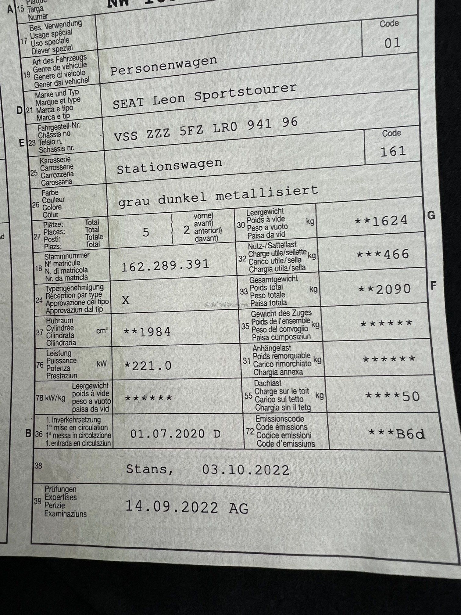 | Kommentar | - alle Bremsscheiben eingelaufen - Zustand Felgen Sommerräder unbekannt - 1 feine Beule auf Dachrahmen Beifahrerseite, wurde nicht fotografiert - ab Platz ohne Garantie |