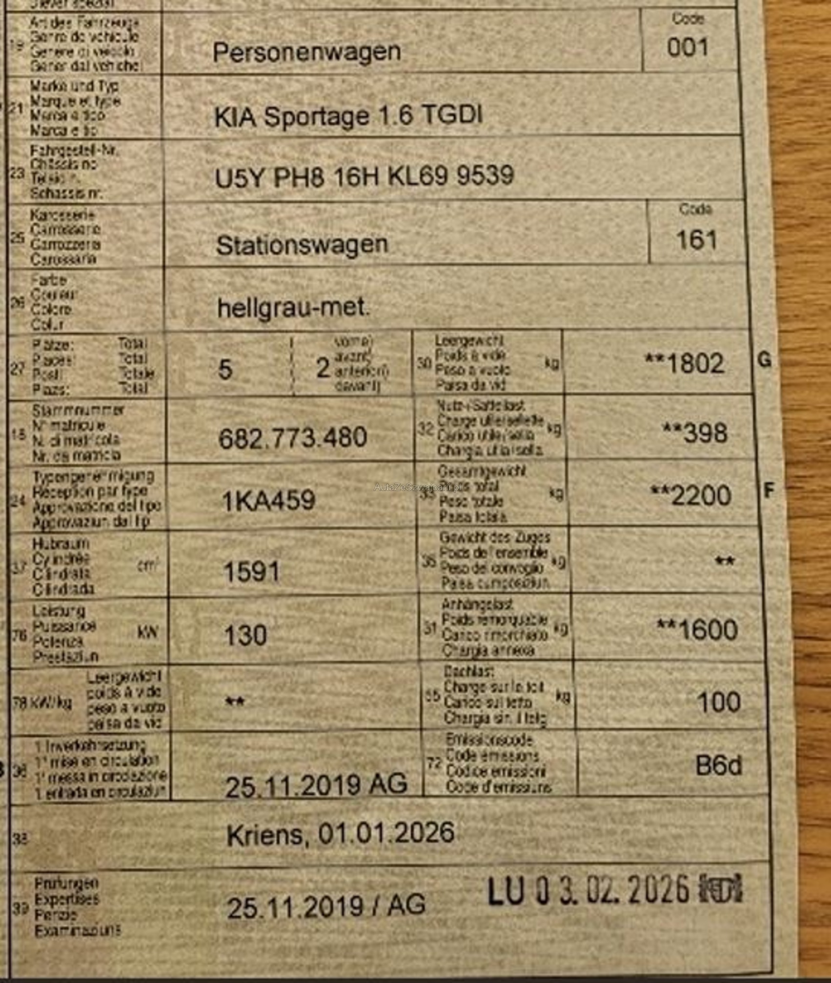 | Kommentar | Sehr gepflegtes Fahrzeug Sommerräder müssen nicht eingetragen werden sind Original Grösse Sommer und Winterreifen in Ordnung Fahrzeug ist mit einer Anhängerkupplung ausgestattet |