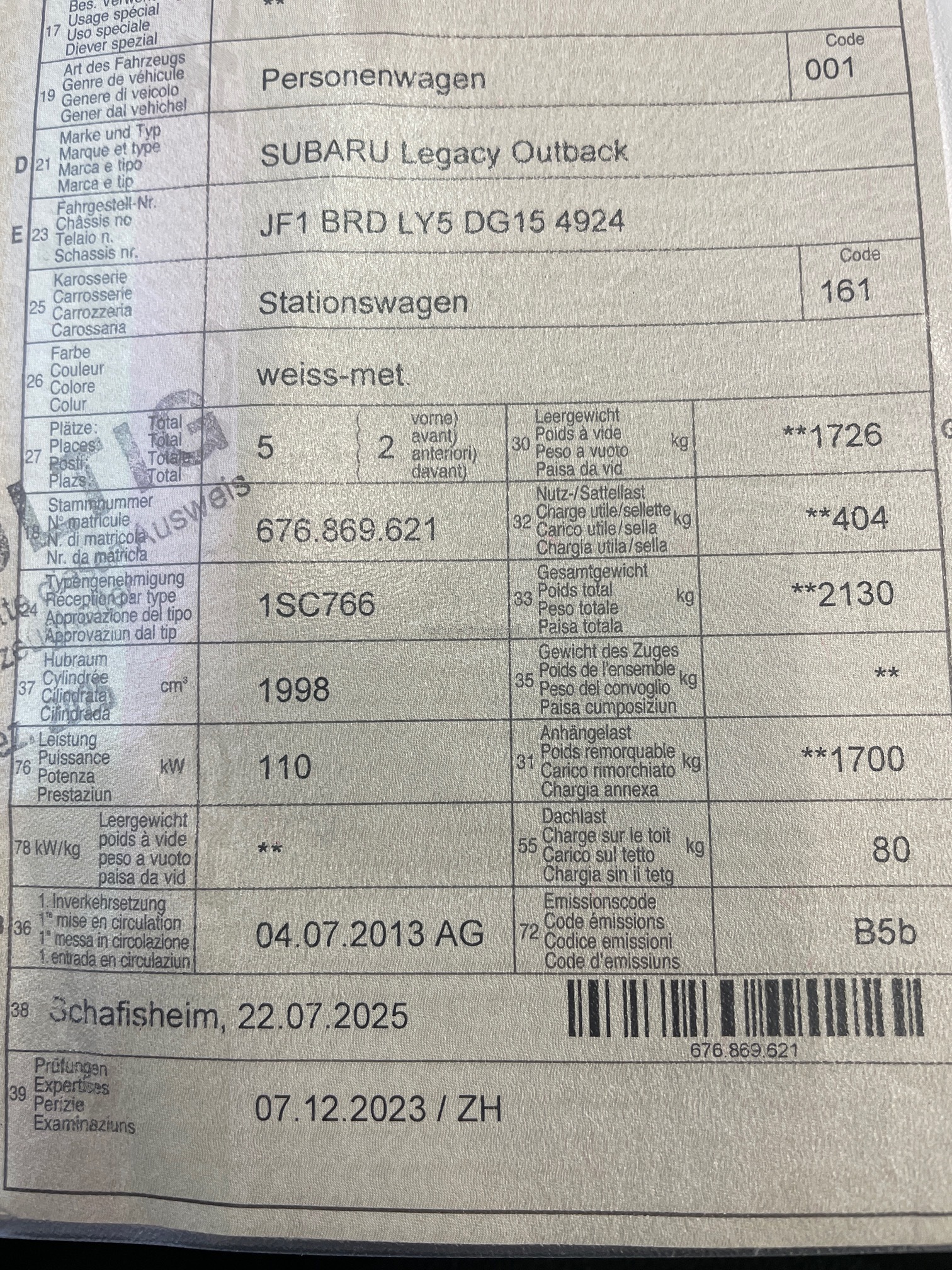 | Letzte Inspektion | 2023-12-01 |