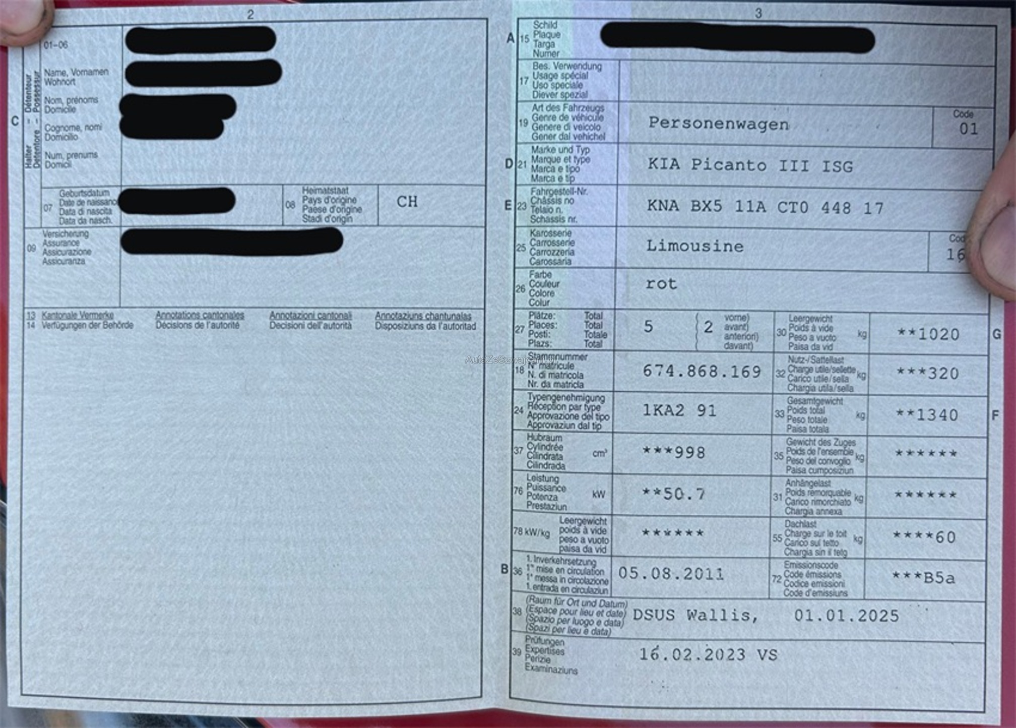 | Kommentar | - Kratzer auf Stossstange vorne Mitte - Gebrauchsspuren Jede Gewährleistung wird wegbedungen. Wandelung und Minderung sind ausgeschlossen. Schadenersatzansprüche, gleich aus welchem Rechtsgrund, sind ebenfalls ausgeschlossen, soweit gesetzlich zulässig. |