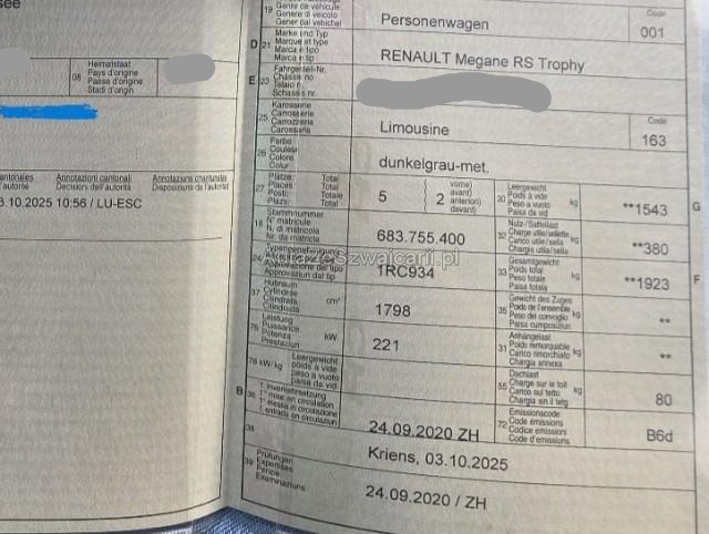| Condition_and_Equipment | Verkauf Der Verkauf erfolgt durch den Halter in Zusammenarbeit mit der Firma TeamConsulting, nicht durch die XpertCenter AG. Das Fahrzeug muss bei Abholung bar vor Ort bezahlt werden. Zusätzlich zum Gebot fällt eine Handlinggebühr an. Demontage Persönliche Gegenstände oder Ladegut im Fahrzeug werden entfernt. Zustand Fahrzeug muss transportiert werden (Höhe und Breite beachten). Batterie leer. Bereifung Fahrzeug wird mit Sommerräder abgegeben. Schlüssel Nur ein Schlüssel vorhanden. Kategorie Das Fahrzeug wird vom Besitzer noch benutzt. --- Links Linke Seite beschädigt. Rechts Rechte Seite beschädigt. Motor Risiko Motor. Risiko Getriebe. Ladeluftkühler eingedrückt. Elektrik Risiko Steuergeräte. Unterboden Bodengruppe verzogen/beschädigt. Sonstige Schäden Div.Carrosserie Teile sind leicht beschädigt. Weitere Beschädigungen Diverse Carrosserie Teile sind beschädigt oder Mangelhaft repariert. (siehe Foto). Das Fahrzeug weisst eine Antriebstörung auf. Die genaue Ursache ist zurzeit nicht bekannt --- Serienaustattung Airbag Fahrer und Beifahrerseite Aussenspiegel elektrisch verstellbar und heizbar Spoiler Sportfahrwerk Seitenairbag Fahrer und Beifahrerseite Mittelarmlehne hinten Innenspiegel automatisch abblendbar Deaktivierung Beifahrerairbag Heckspoiler ESP/ ASR Audiosystem BOSE Ambientebeleuchtung Sportlenkrad in Alcantara Windowbags vorne + hinten ABS und EBV Elektr. Bremskraftverteilung inkl. BA Zwei Zonen-Klimaautomatik Leichtmetallfelgen 19" Multimedia-System Tempomat mit Geschwindigkeitsbegrenzer Automatisch abblendbarer Innenspiegel Dunkle Verglasung hinten Launch Control Regen- und Lichtsensor Heizbare Vordersitze Sportpedale aus Aluminium Kindersitzverankerung ISOFIX hinten Automatische Parkbremse Renault Chipkarte Keyless-Drive Hands-free Berganfahrhilfe Beifahrersitz höhenverstellbar Reifenreparatur-Kit Stop + Start System LED-Scheinwerfer Aussenspiegel elektrisch einklappbar Höhenverstellbarer Fahrersitz mit Lendenwirbelstützen Schalthebelknauf in Leder Schaltwippen am Lenkrad Details siehe gültige Preisliste des Importeurs Sportsitze - Alcantara Einparkhilfe vorne und hinten mit Rückfahrkamera Keine Gewähr auf die Angaben der Serienausstattungen Abstandswarnung Vierradlenkung 4 Control Sport-Abgasanlage Bremssättel rot lackiert Notbrems-Assistent Verkehrsschild-Erkennungssystem TFT-Display gross Connect Apple Car Play/ Android Auto Spurhaltewarner Zweistoff Bremsscheiben Pack Cup Ottopartikelfilter Navigationssystem mit Europakarte Einparkhilfe 360° Sonderausstattung Sonderlackierung Metallic Adaptiver Tempomat ACC Recaro-Sportsitze Alcantara vorne |