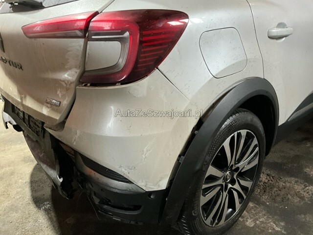 | Condition_and_Equipment | Zustand Fahrzeug ist NICHT fahrbar. --- Heck Heckblech eingedrückt. Kofferboden eingedrückt. Weitere Beschädigungen Auspuff Motorsteuerlampe leuchtet (siehe Fotos) --- Serienaustattung Airbag Fahrer und Beifahrerseite Sitzheizung vorne Elektrische Fensterheber vorne Aussenspiegel elektrisch verstellbar und heizbar Bordcomputer Servolenkung Höhenverstellbarer Beifahrersitz Lederlenkrad Elektrische Fensterheber hinten ABS und EBV Elektr. Bremskraftverteilung Leichtmetallfelgen 18" Reifendruck-Kontrollsystem RDK Mittelkonsole Beifahrersitz verstellbar Isofix-Kindersitzbefestigung Ambientebeleuchtung Lenkrad beheizbar Rückfahrkamera Seitenairbags vorne ESP/ ASR/ CSV Tempomat mit Geschwindigkeitsbegrenzer Automatisch abblendbarer Innenspiegel Dunkle Verglasung hinten Fahrersitz 6-fach elektrisch verstellbar HSA Berganfahrassistent Rücksitzlehne geteilt 1/3 oder 2/3 / umklappbar Klimaanlage automatisch inkl. Pollenfilter Automatische Parkbremse Renault Chipkarte Keyless-Drive Hands-free Licht- und Regensensor Einparkhilfe hinten Reifenreparatur-Kit Stop + Start System LED-Scheinwerfer Einparkhilfe vorne LED Tagfahrlicht Aussenspiegel elektrisch einklappbar Ladekabel Dach in Kontrastfarbe Keine Gewähr auf die Angaben der Serienausstattungen Abstandswarnung Fussgänger-Soundmodul Adaptiver Fernlichtassistent 360° Kamera Toter-Winkel-Assistent Automatische Notbremsung Parkassistent Notbrems-Assistent Verkehrsschild-Erkennungssystem TFT-Display gross Wireless Charging für mobile Geräte Sitzbezüge in Leder schwarz Apple Car Play/ Android Auto Spurhaltewarner Ottopartikelfilter Pack Navigation Multimediasystem 9.3" Audiosystem BOSE 9.3" Garantie Batterie 8 Jahre/ 160'000 km Sonderausstattung Lackierung Sonderfarben zweifarbig |