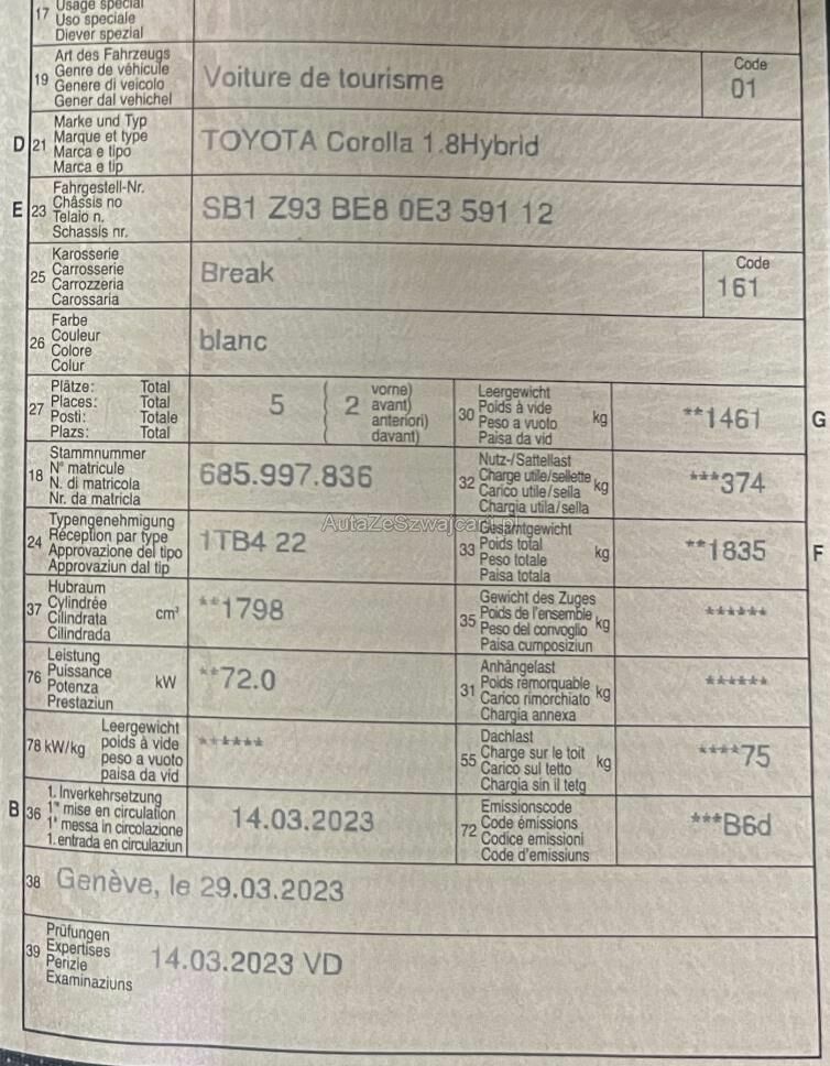 | Typ | Corolla Touring Sports 1.8 HSD Comfort |