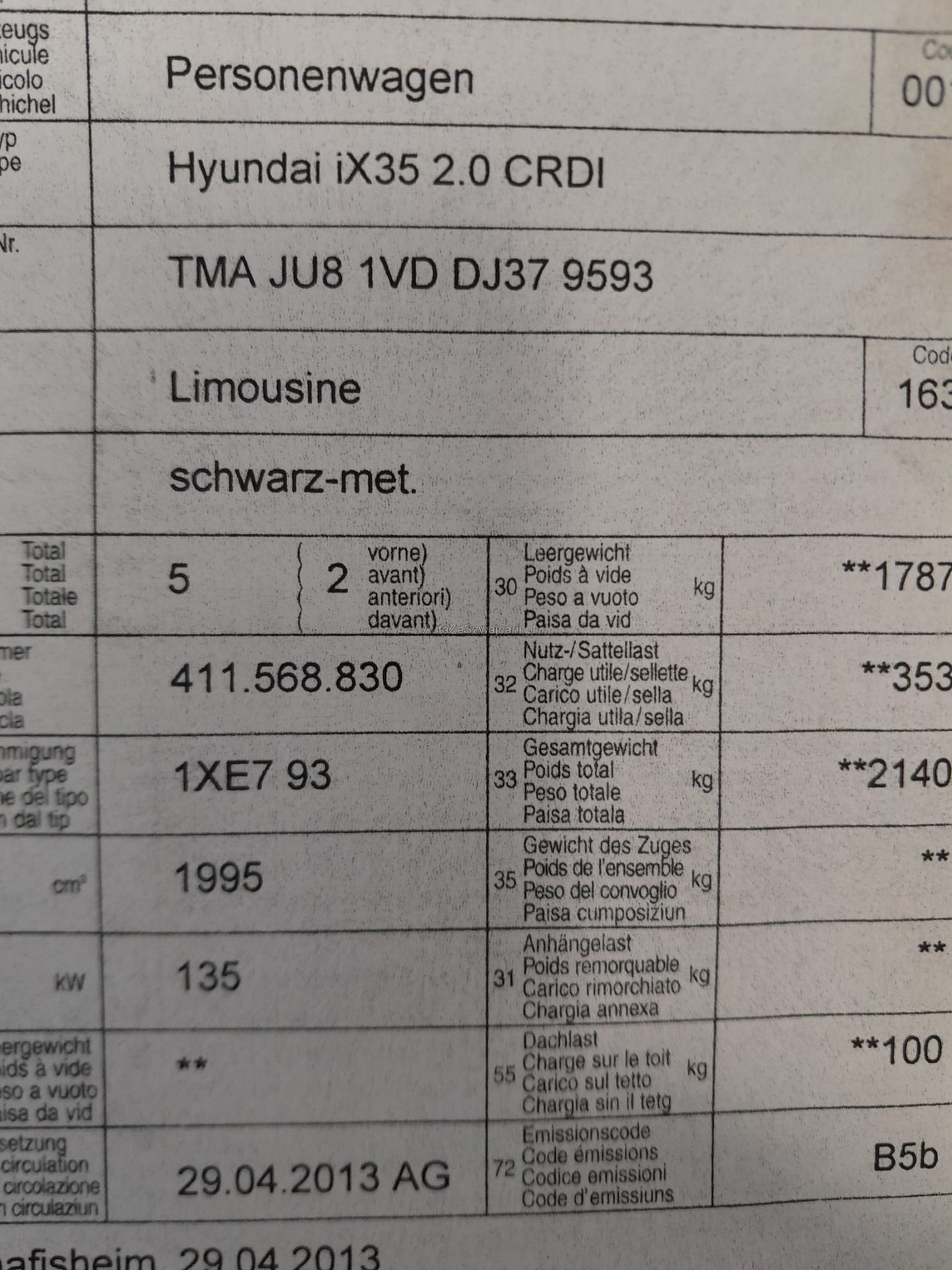 | 1. rejestracja | 1 kwietnia 2013 |
