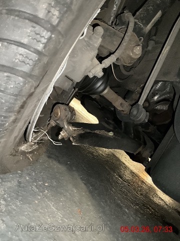 | Schadensbeschreibung | Beschreibung der Schäden: Stossfänger vorne, Kotflügel VR, Achse VR gebrochen, Felge, Pneu, Querlenker beschädigt. Weitere Schäden im Bereich der Achse nicht ausgeschlossen. Lenkung, Achswelle. Motor läuft. 2 Pneus vorne abgelaufen, 2 Pneus hinten knapp auf Minimum Vorbestandene Schäden: Mitte (Dach/Boden): Delle vlinks auf Dach |