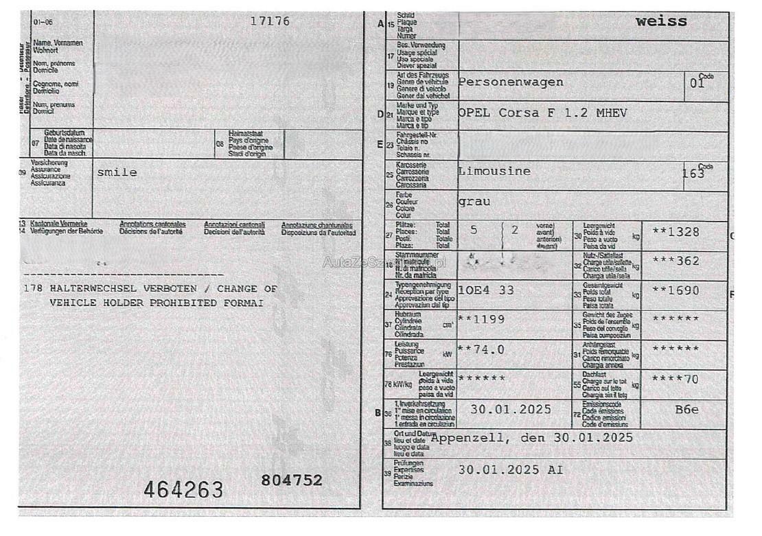 | Fahrzeugausweis | Vorhanden |