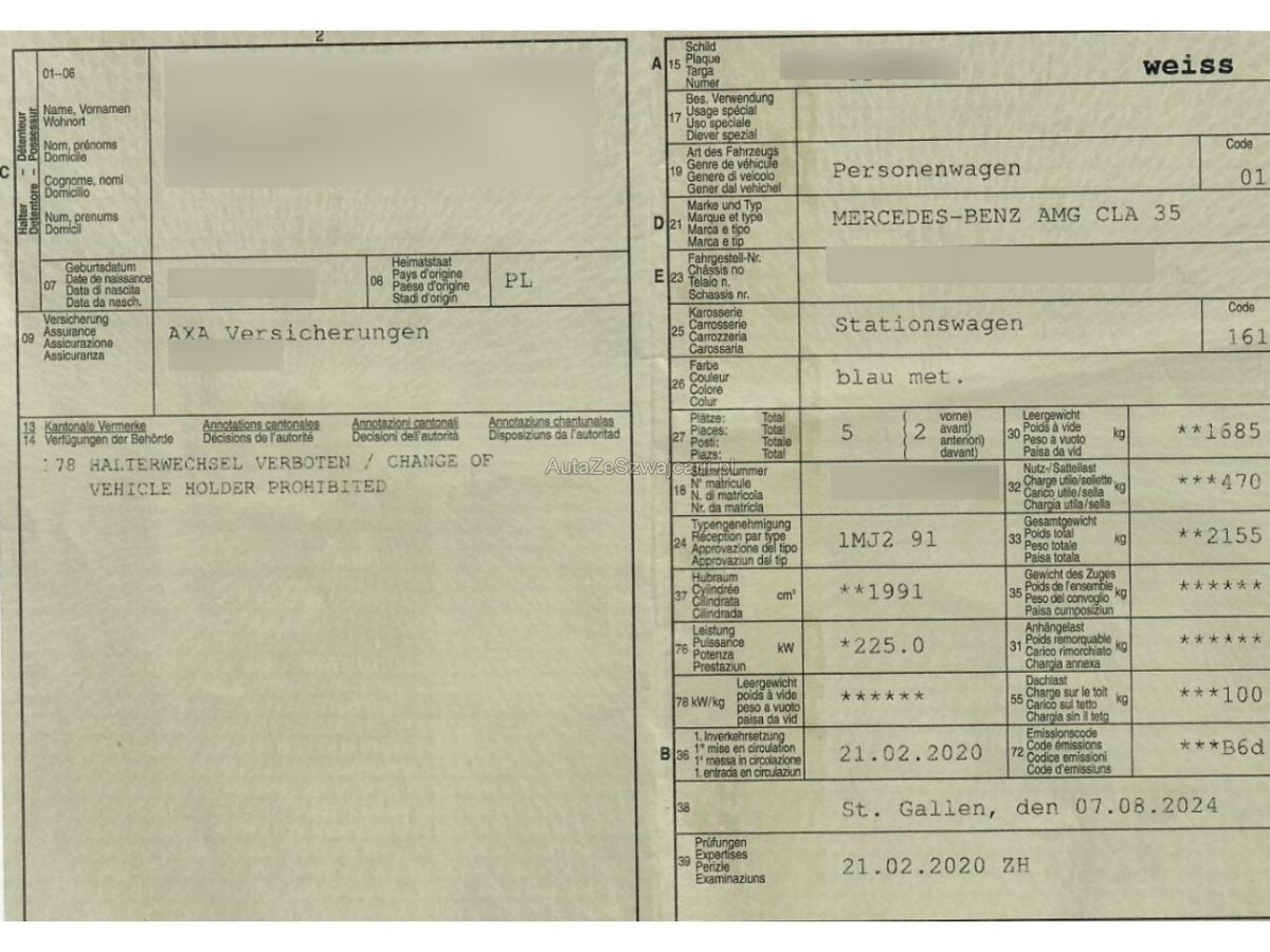 | Fahrzeugausweis | Vorhanden |