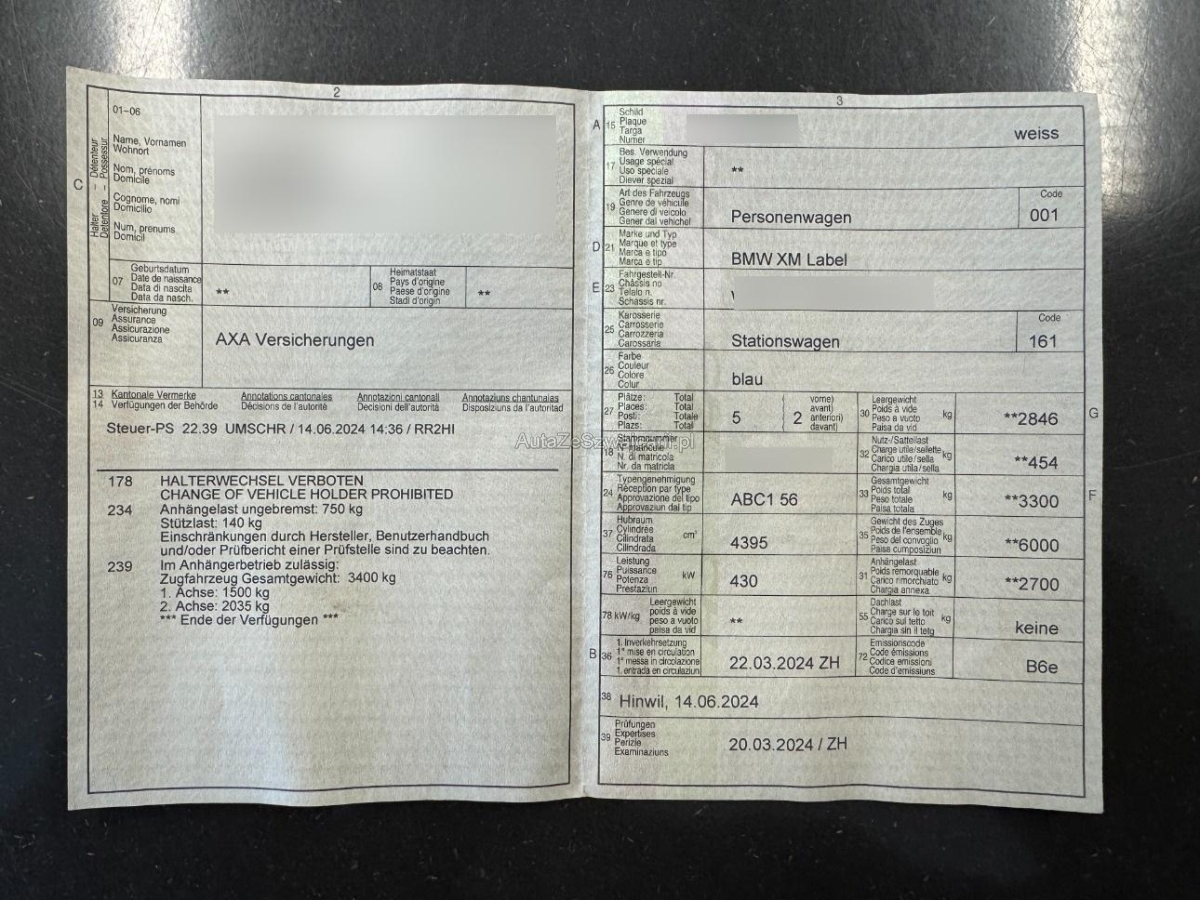 | Fahrzeugausweis | Vorhanden |