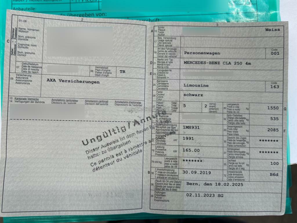 | Fahrzeugausweis | Vorhanden |