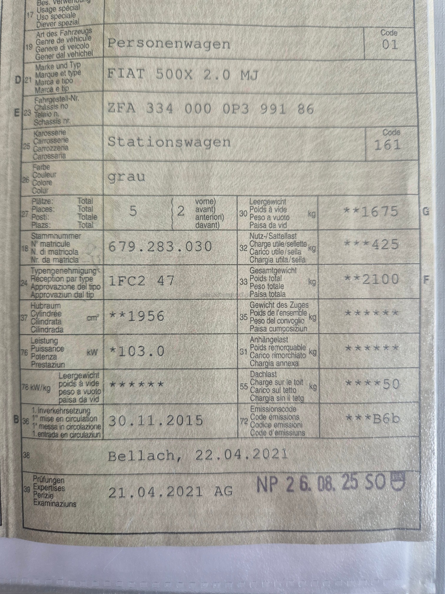 | VIN | ZFAXXX |