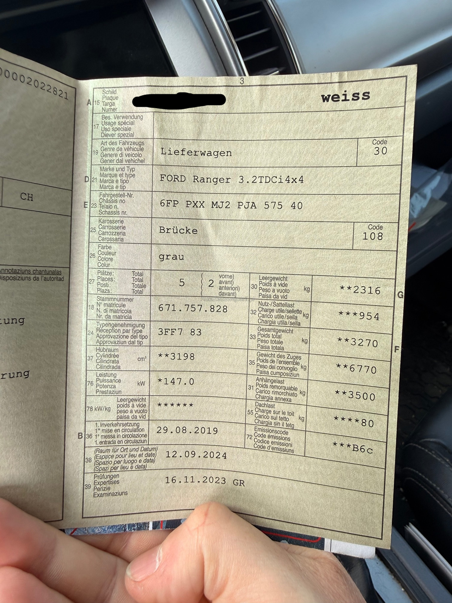 | Kommentar | Neue Bremsen (06.03.2026), Partikelfiltertest nicht bestanden. Automat ruckelt. Kein weitergehender Werkstatttest durchgeführt. Am Fahrzeug wurde kein Werkstatttest gemacht (Für sichtbare oder nicht sichtbare Mängel wird nicht gehaftet). Wir testen & kontrollieren nicht alle Funktionen vom Fahrzeug. Das Risiko liegt somit vollumfänglich beim Käufer. Nachdem der Höchstbietende den Zuschlag erhalten hat, gibt es keine Nachverhandlung, auch wenn nicht deklarierte Mängel zum Vorschein kommen sollten. Ab Platz ohne Garantie, Wandelung und Minderung werden wegbedungen. |