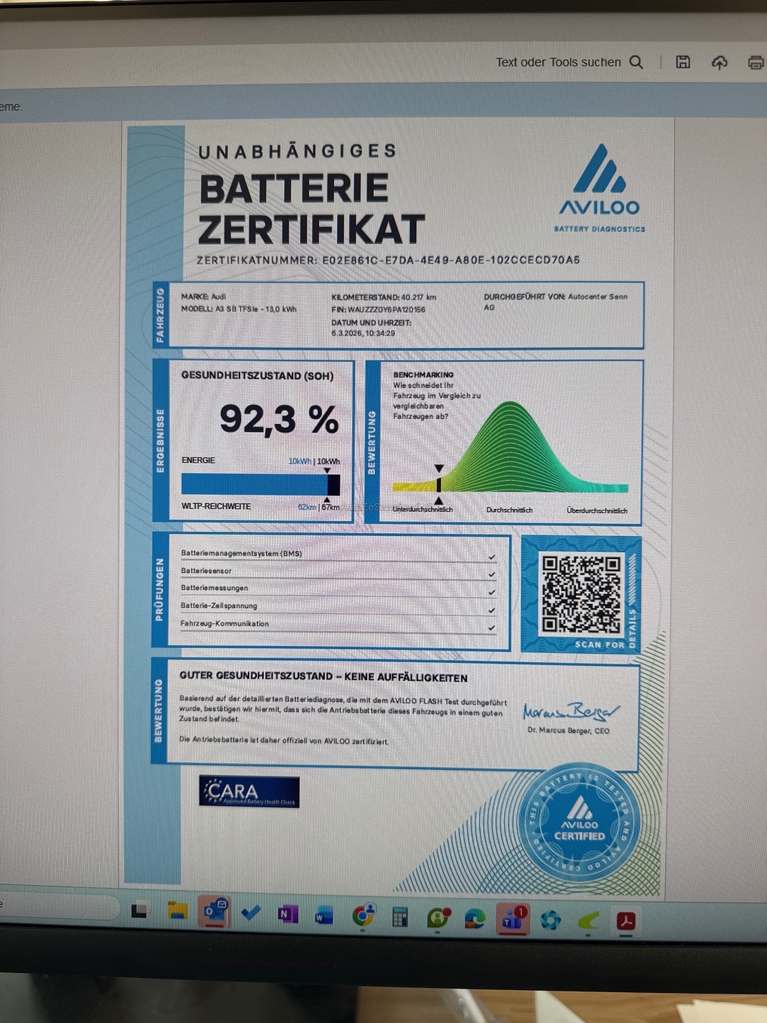 | Kommentar | Sehr solider und gepflegter Eindruck. Wenig KM. 8fach bereift - mit Werksgarantie. Aviloo Test 92.3% der Batterie. Am Fahrzeug wurde kein Werkstatttest gemacht (Für sichtbare oder nicht sichtbare Mängel wird nicht gehaftet). Wir testen und prüfen nicht alle Funktionen vom Fahrzeug. Das Risiko liegt somit vollumfänglich beim Käufer. Nach erhalt des Zuschlags, gibt es keine Nachverhandlung, auch wenn nicht deklarierte Mängel zum Vorschein kommen. Ab Platz ohne Garantie oder Gewährleistung, Wandelung und Minderung werden wegbedungen. |
