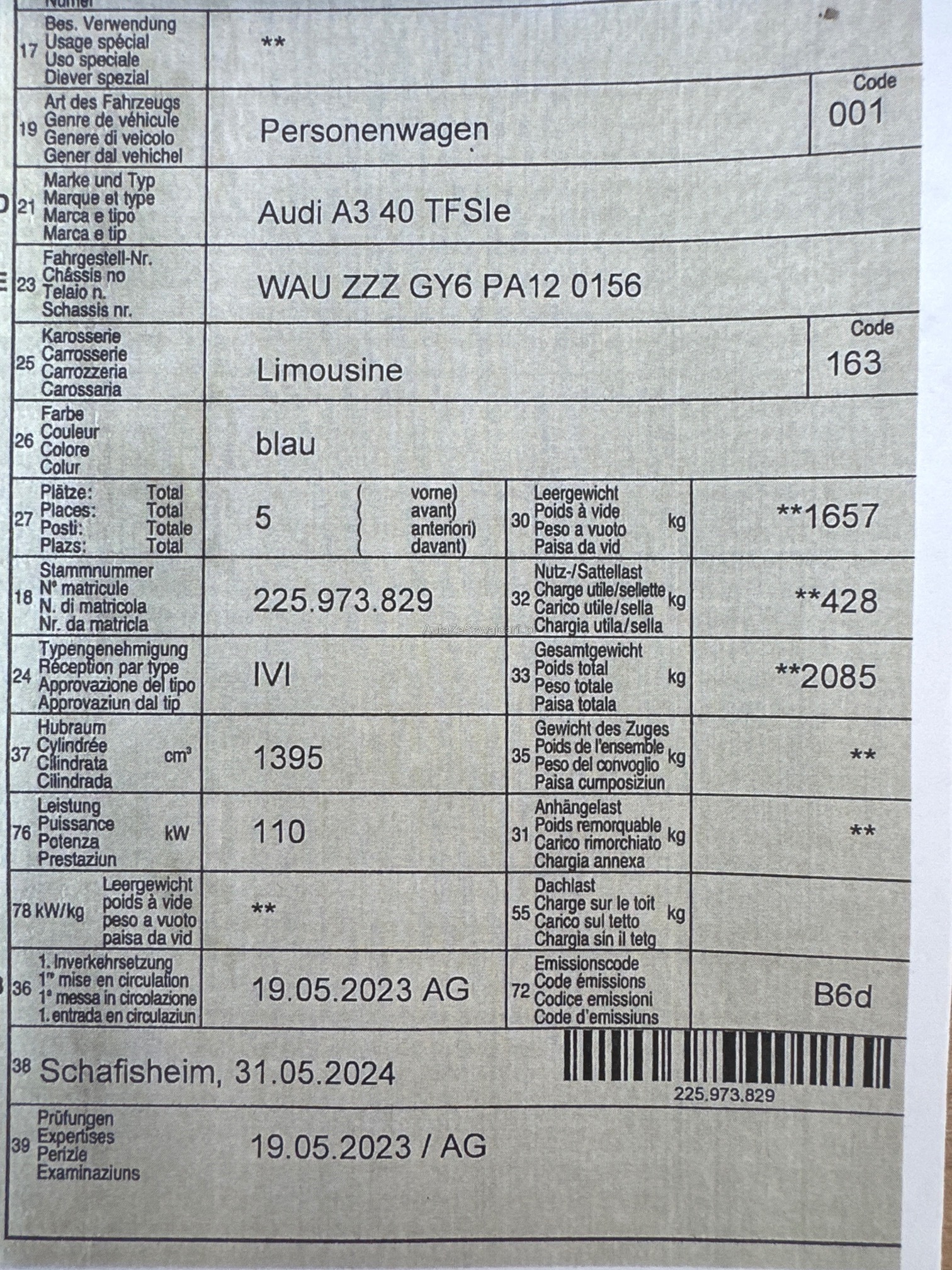 | VIN | WAUXXX |