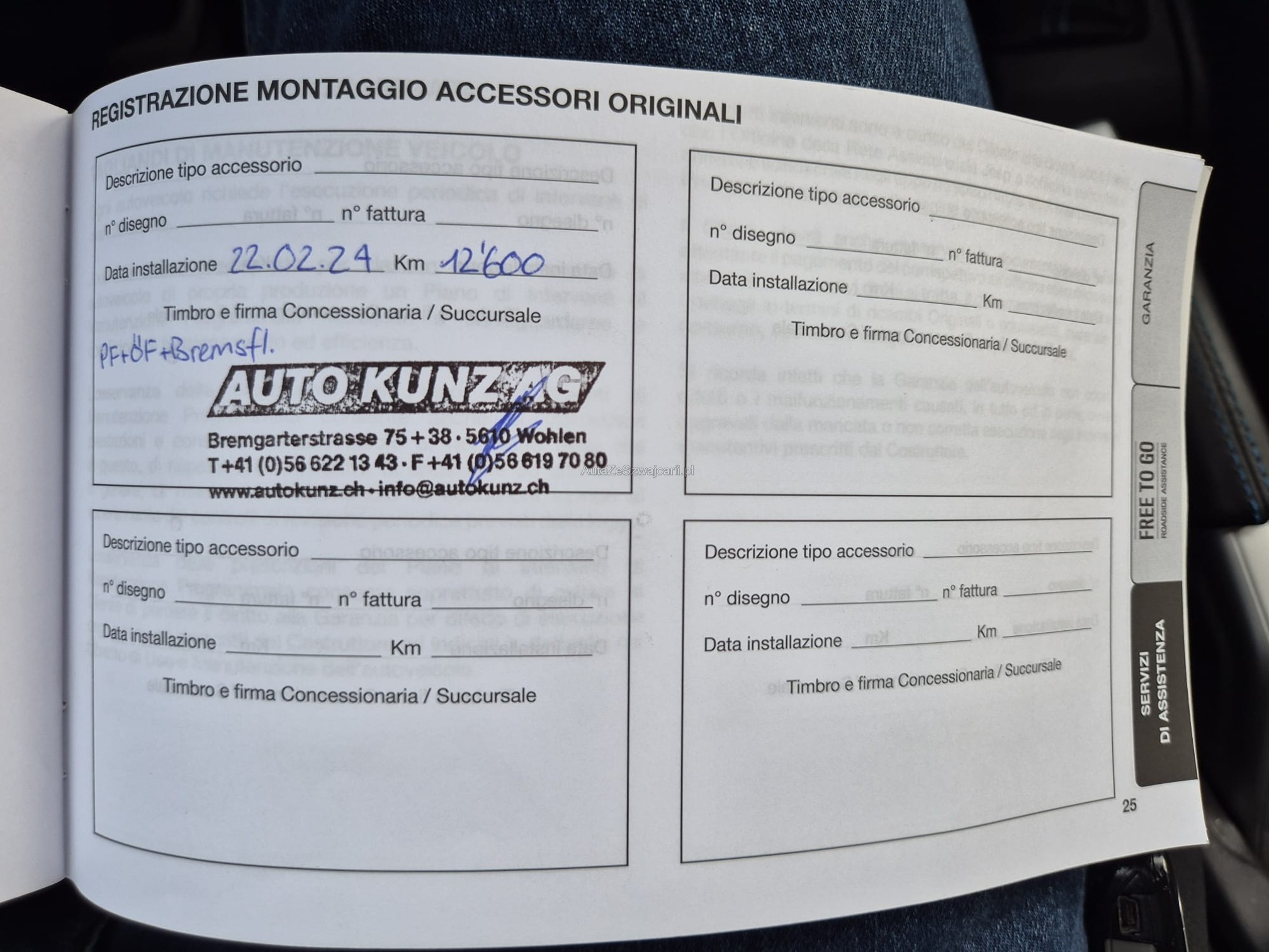 | Kommentar | Das Fahrzeug macht einen sehr guten Eindruck. Der letzte Service wurde im Mai 2025 gemacht und wurde separat quittiert, daher ist dieser nicht im Serviceheft ersichtlich. Der Schaden vorne links am Stossfänger wird voraussichtlich noch vor dem Verkauf instand gestellt. 5 Winter- und 5 Sommerräder (mit Terrainbereifung) vorhanden → siehe Fotos. Es wurde kein Eintauschtest in unserer Werkstatt gemacht, lediglich die Rückrufaktion 68C (Software-Update für das Batteriesteuergerät BMS). Alters-, nutzungs- und laufzeitbedingte Mängel am Fahrzeug sind nicht ausgeschlossen und nicht verhandelbar. Für festgestellte und nicht festgestellte Mängel wird keine Haftung übernommen. Eine Minderung des Kaufpreises oder eine Rückgabe (Wandelung) ausgeschlossen. Das Fahrzeug muss spätestens 5 Tage nach dem Kauf abgeholt werden (gemäss angegebenem Verfügbarkeitsdatum oder Absprache), ansonsten wird eine Standgebühr von CHF 50.- pro Tag verrechnet. |