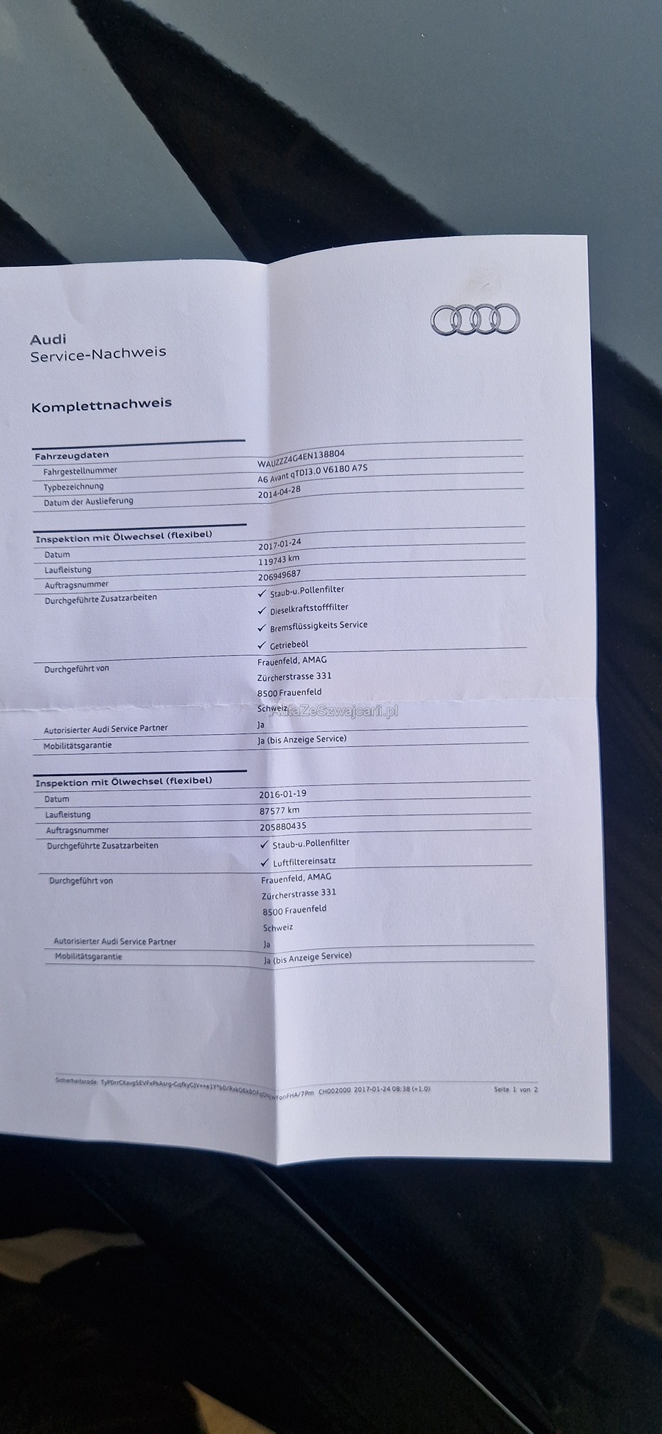 | Kommentar | möglicher Eintausch Das Fahrzeug ist allgemein in einem guten Zustand. Fahrzeug startet nicht mehr, baut zu wenig Raildruck auf. Schraube von einem Injektor war loose, laut Audi Spezialist ist es möglich das man nur alles wieder abdichten muss. Wir selbst haben keine weitere Diagnose gemacht, da der Kunde kein Geld ausgeben möchte und ein Neufahrzeug genommen hat. Die Karosserie und der Innenraum sind in einem schönen Zustand. Am Fahrzeug wurde keine vollumfängliche Prüfung der mechanischen Teile und der Carrosserie durchgeführt! Das Risiko liegt somit vollumfänglich beim Käufer. Um Missverständnisse zu vermeiden kann das Fahrzeug auf Voranmeldung besichtigt & getestet werden. Wird davon bewusst kein Gebrauch gemacht, liegt die Verantwortung beim Käufer. Nach Zuschlag, keine Nachverhandlungen möglich. Ab Platz ohne Garantie, Wandelung und Minderung werden wegbedungen. |
