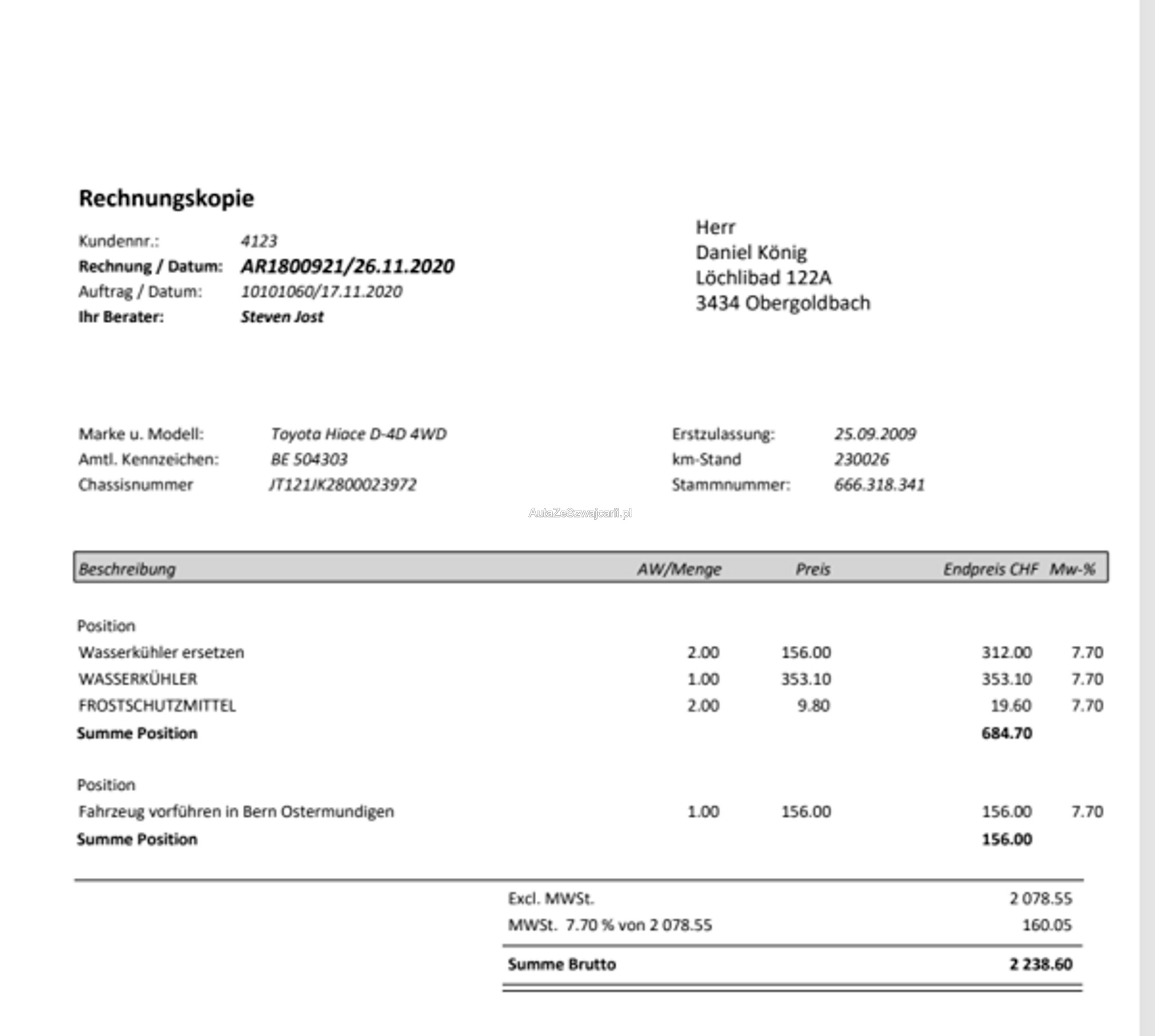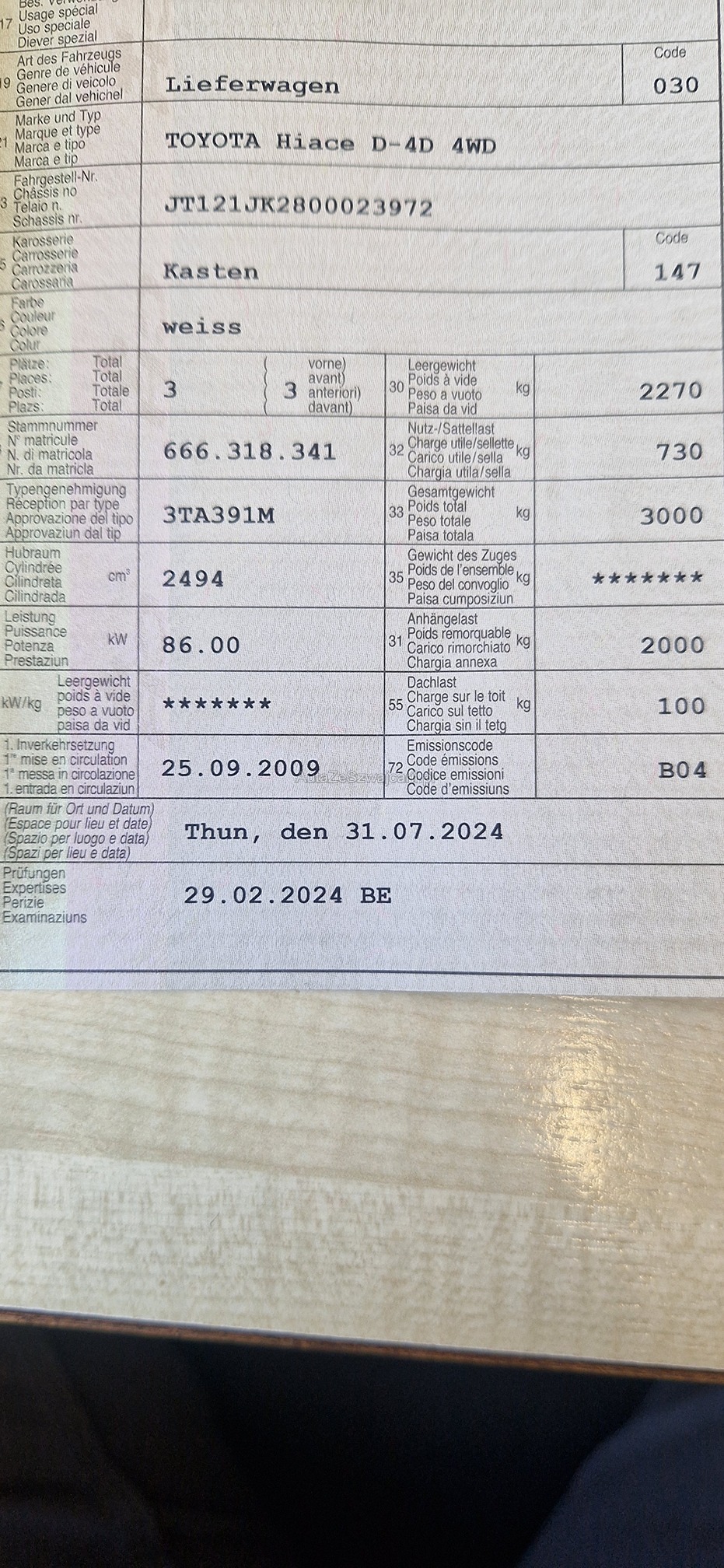 | Kommentar | Fahrzeug fährt, bremst & schaltet. 4. Gang lässt sich nicht einlegen. Geräusch beim fahren. Fahrzeug hätte für den Aufpreis von 1000.- noch eine neue Heckklappe lackiert dabei. (nicht Teil der Auktion) Bei einer Fahrzeugbeschreibung kann immer etwas vergessen oder nicht gesehen werden. Das Risiko liegt somit vollumfänglich beim Käufer. Um Missverständnisse zu vermeiden kann das Fahrzeug auf Voranmeldung besichtigt & getestet werden. Wird davon bewusst kein Gebrauch gemacht, liegt die Verantwortung beim Käufer. Nach Zuschlag, keine Nachverhandlungen möglich. Ab Platz ohne Garantie, Wandelung und Minderung werden wegbedungen. |