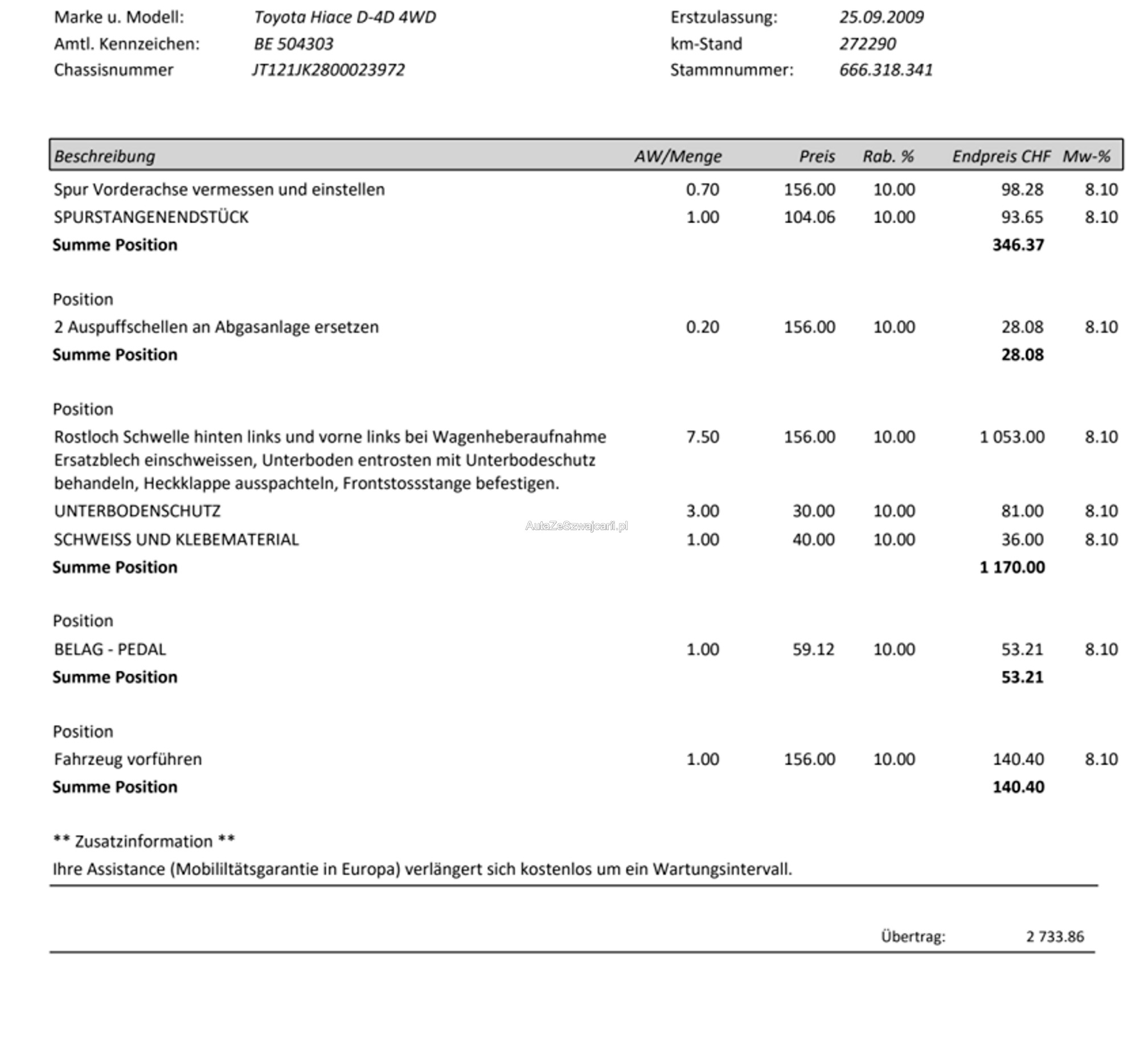 | Rost am Fahrzeug | No |